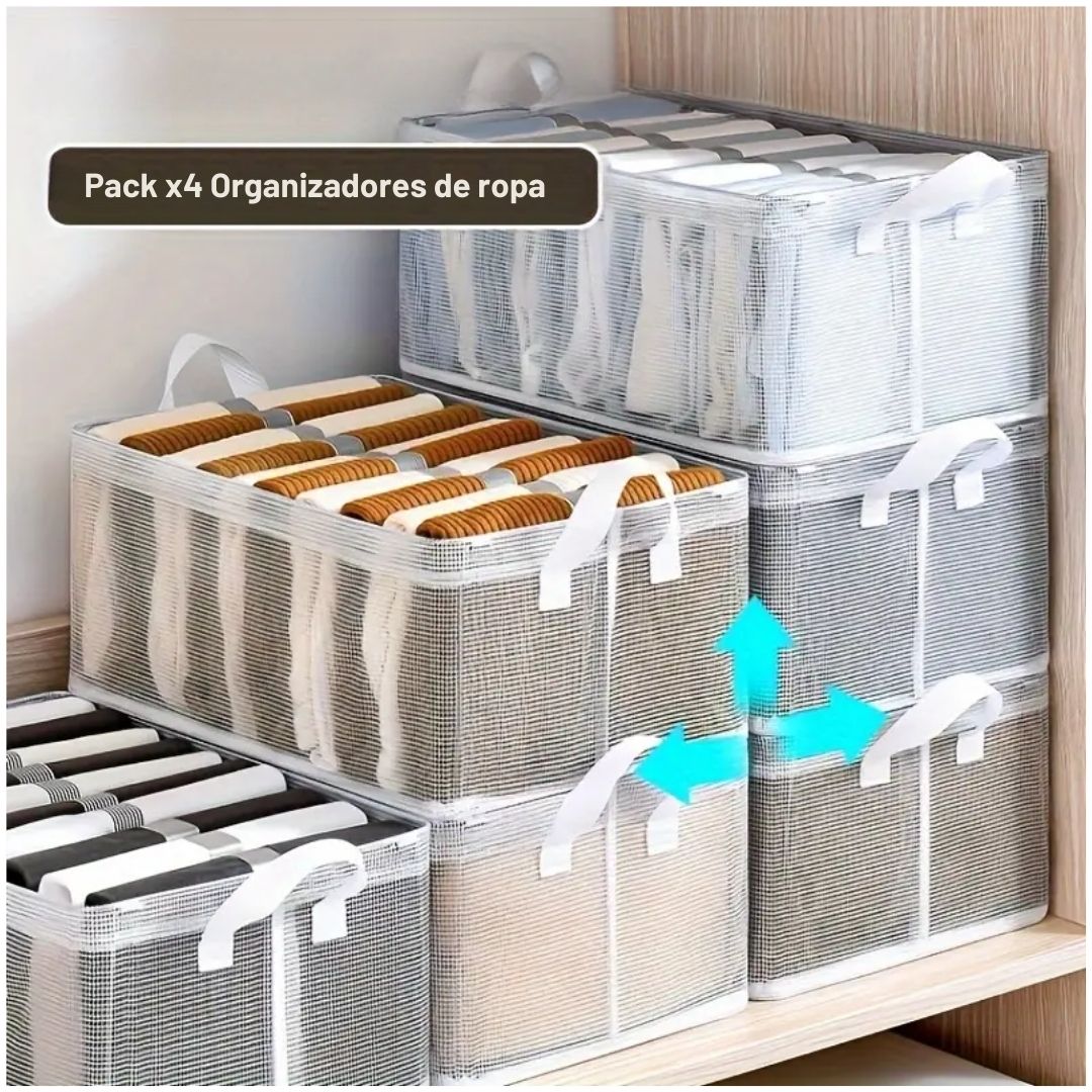 Pack x4 Cajas Organizadoras de Ropa Multiusos Plegable Transparente