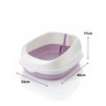 - Mantén la higiene de tu gato y la limpieza de tu hogar con esta práctica bandeja sanitaria con diseño amplio y funcional. Su borde elevado evita que la arena se disperse fuera de la caja, manteniendo el área siempre ordenada.
