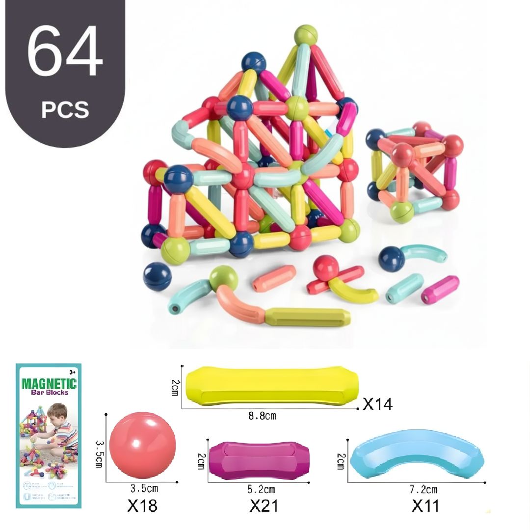 - Este set de bloques magnéticos de 64 piezas es el compañero perfecto para que niñas y niños a partir de los 3 años exploren su creatividad mientras desarrollan habilidades esenciales jugando.