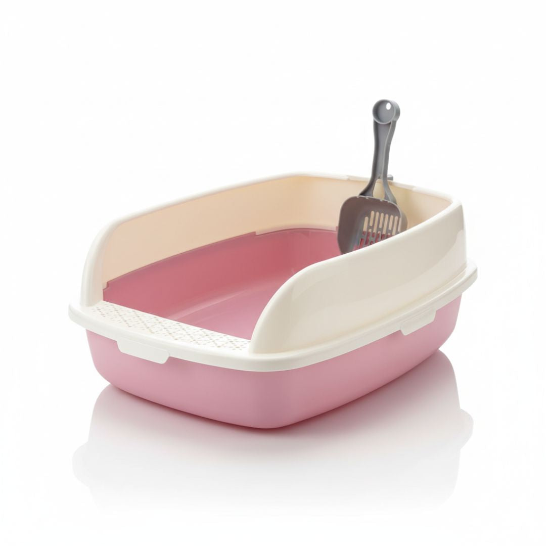 - Mantén la higiene de tu gato y la limpieza de tu hogar con esta práctica bandeja sanitaria con diseño amplio y funcional. Su borde elevado evita que la arena se disperse fuera de la caja, manteniendo el área siempre ordenada.