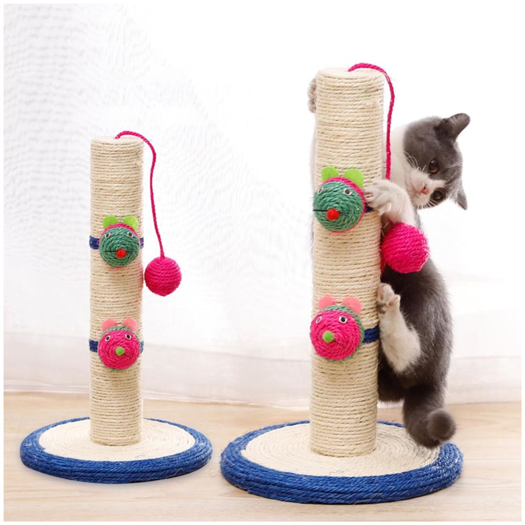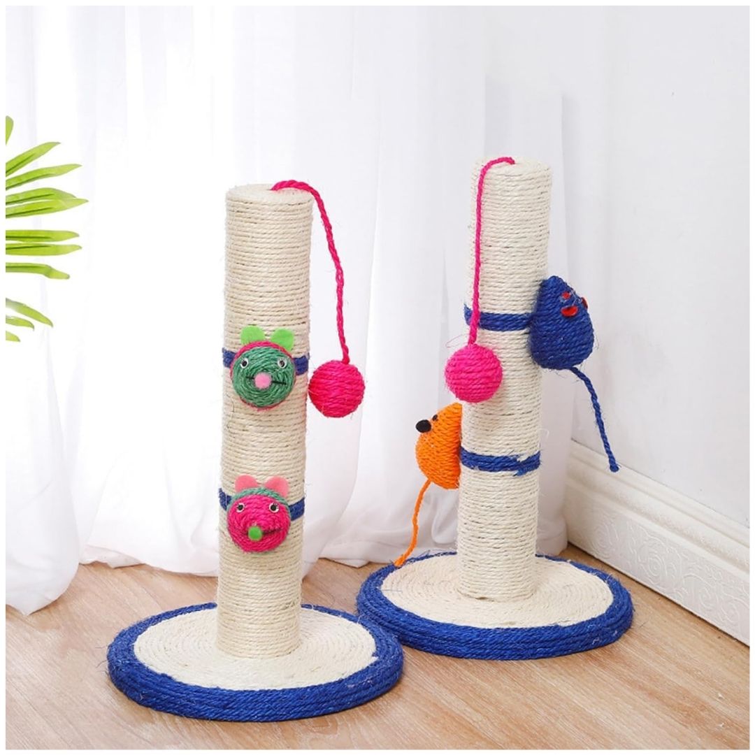 - Su poste recubierto de cuerda resistente permite que tu mascota se estire y afile sus uñas de forma segura, mientras que los juguetes colgantes despiertan su curiosidad y fomentan la actividad física.