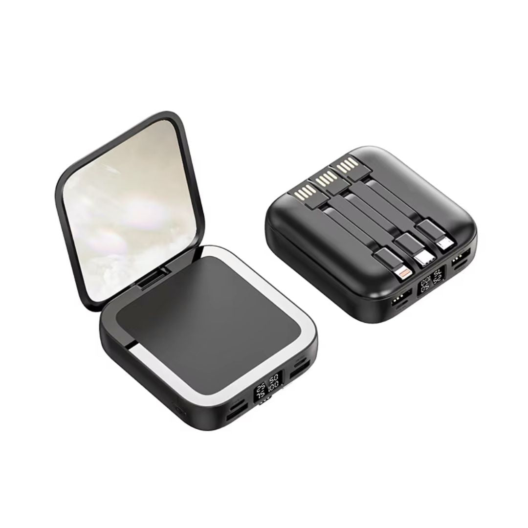Cargador Power Bank Carga Rápida 9000mAh 3 en 1 con Espejo Integrado