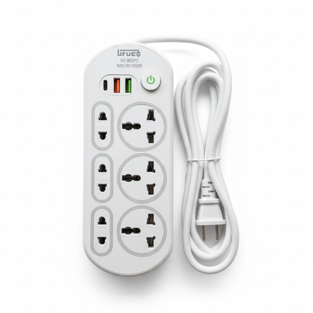 Cargador Multipuerto 9 en 1 Extensión Eléctrica 2 Puertos USB + 1 Tipo C + 4 Tomacorrientes