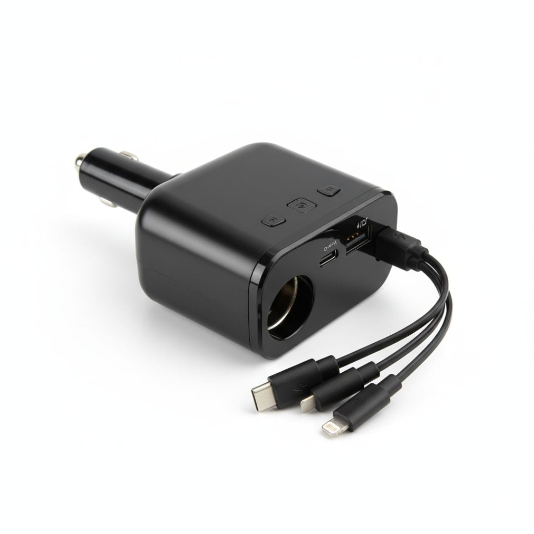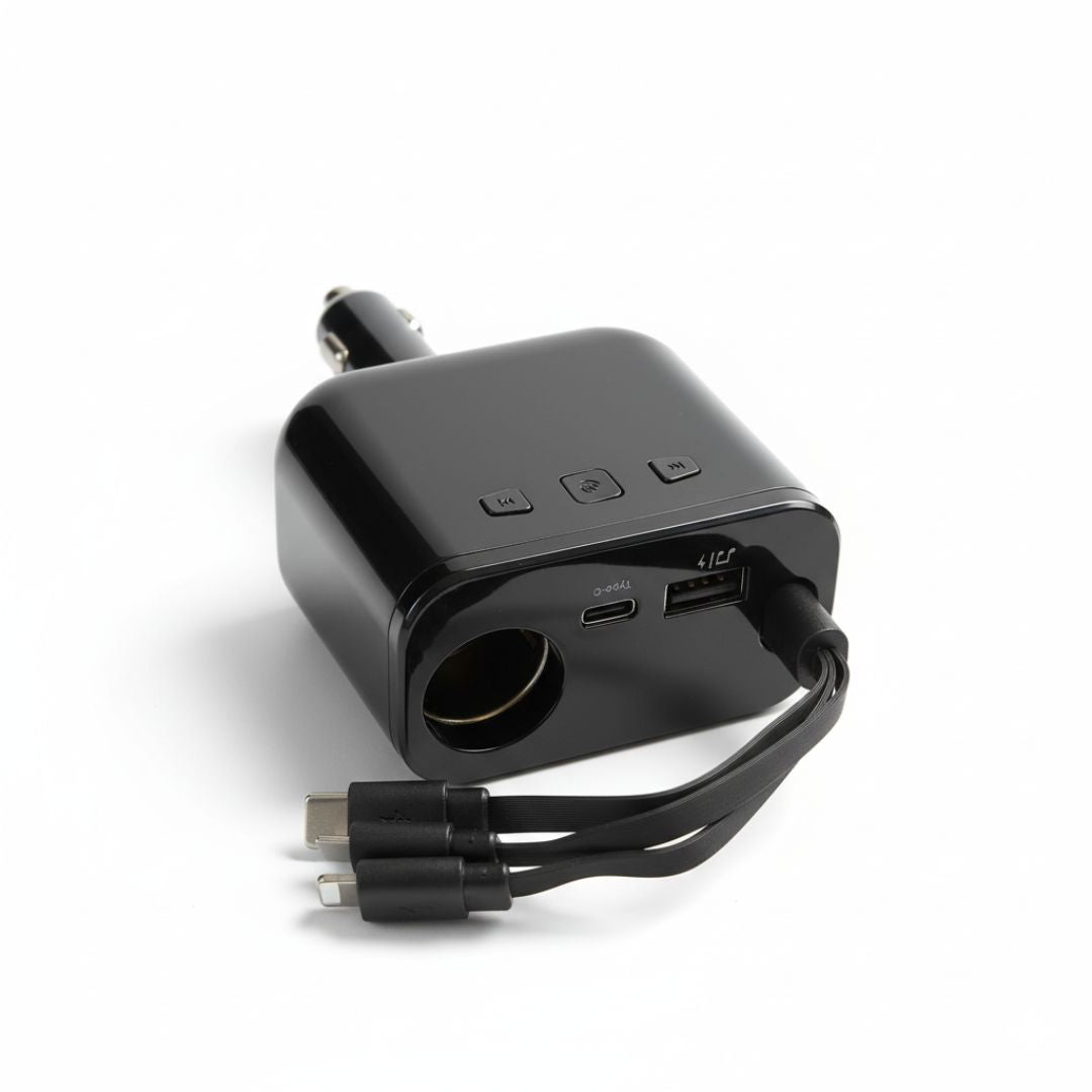 - Potencia tus viajes y mantén siempre cargados tus dispositivos con el Cargador Multifunción para Auto, diseñado para ofrecer energía rápida, segura y estable mientras conduces.
