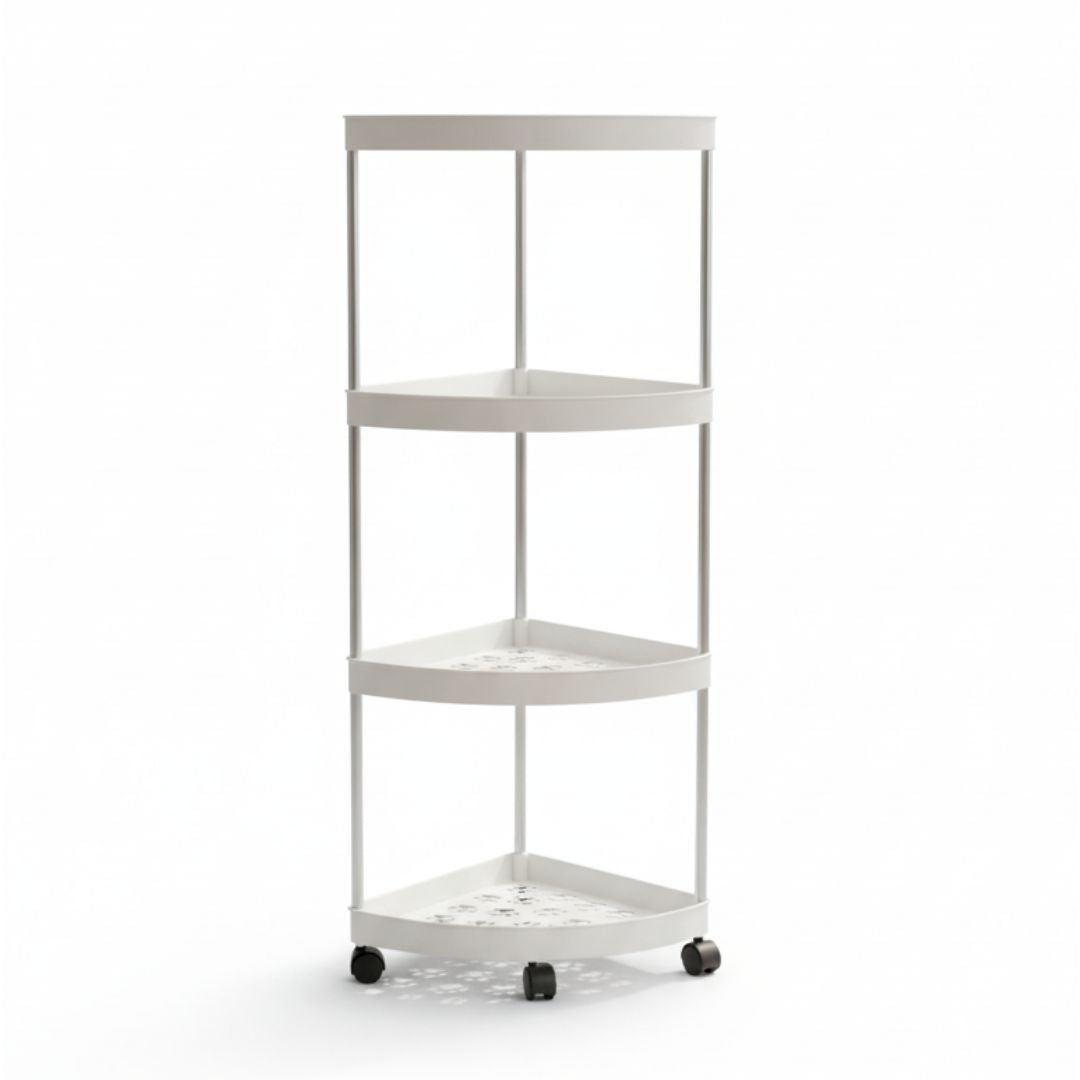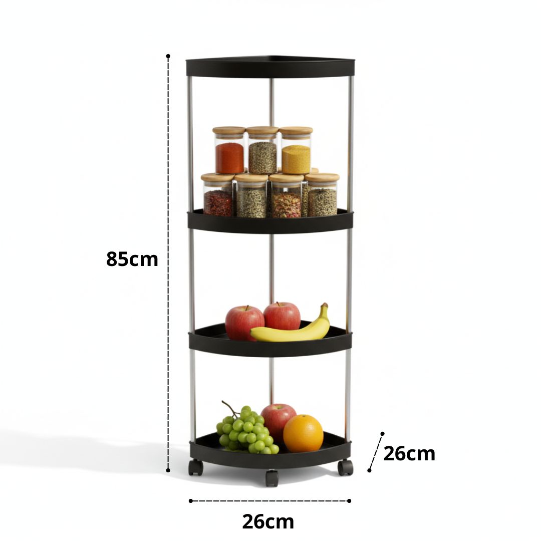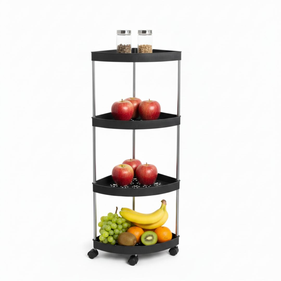 - Organizador Esquinero de 4 Niveles con Ruedas, aprovecha cada rincón de tu cocina con estilo y funcionalidad.