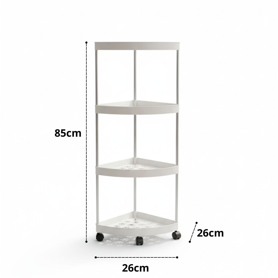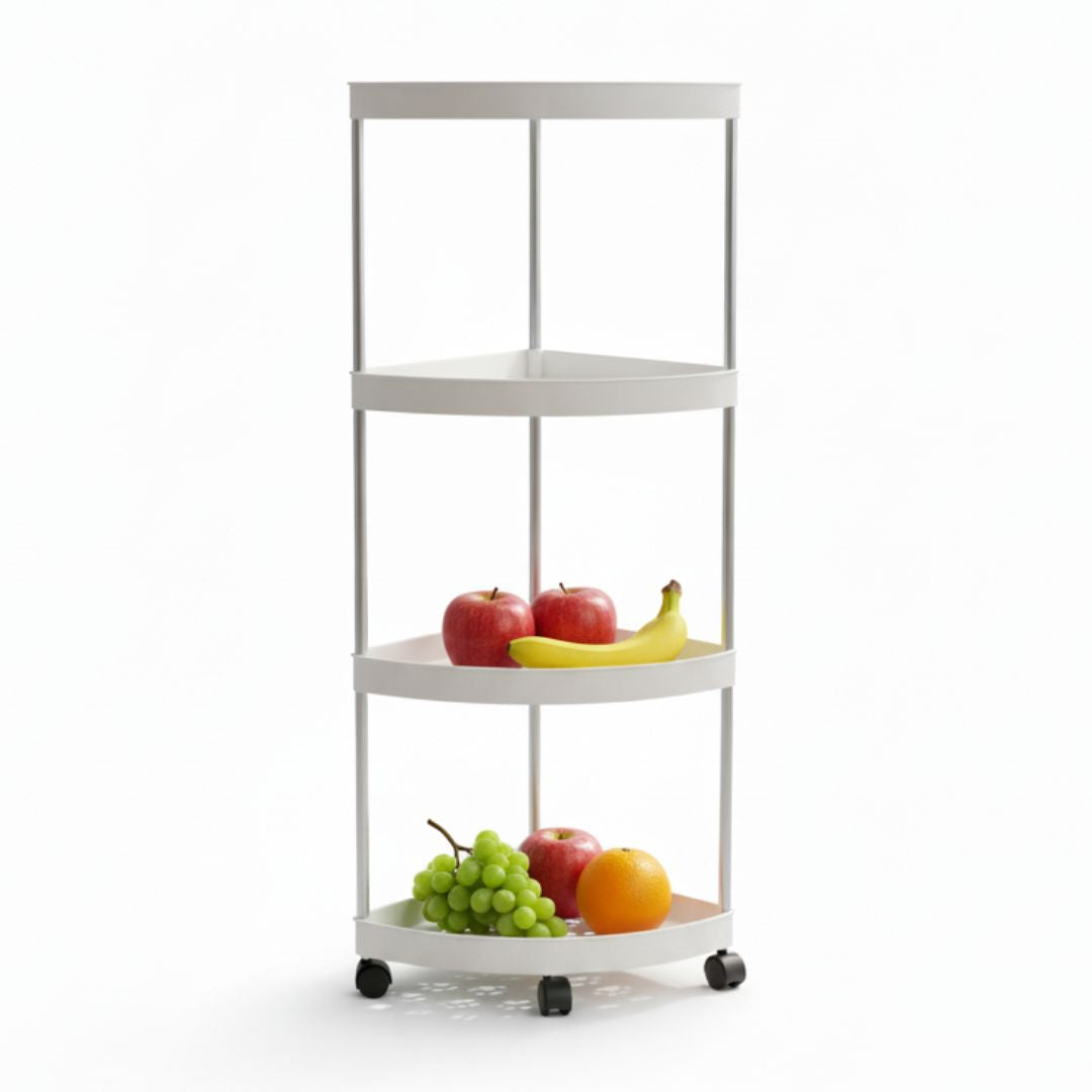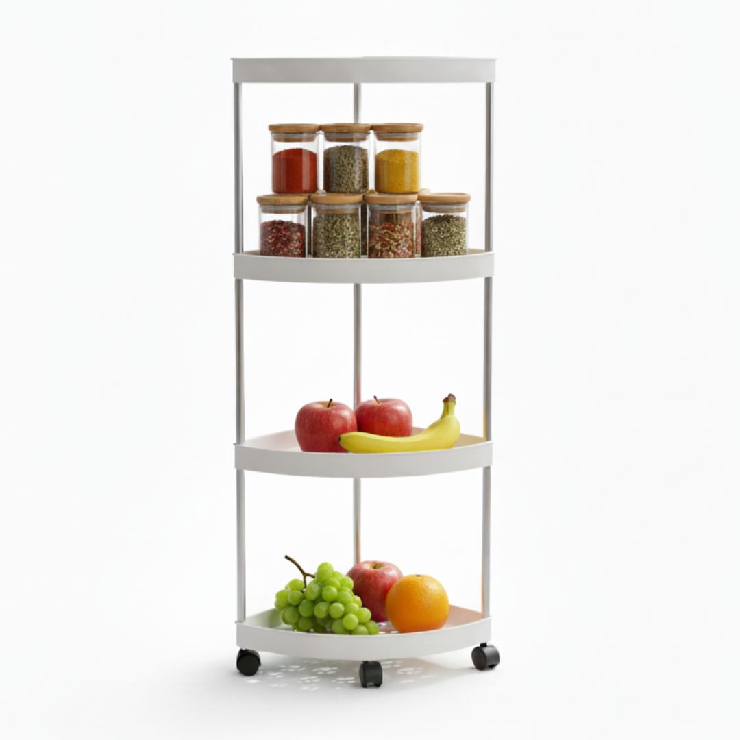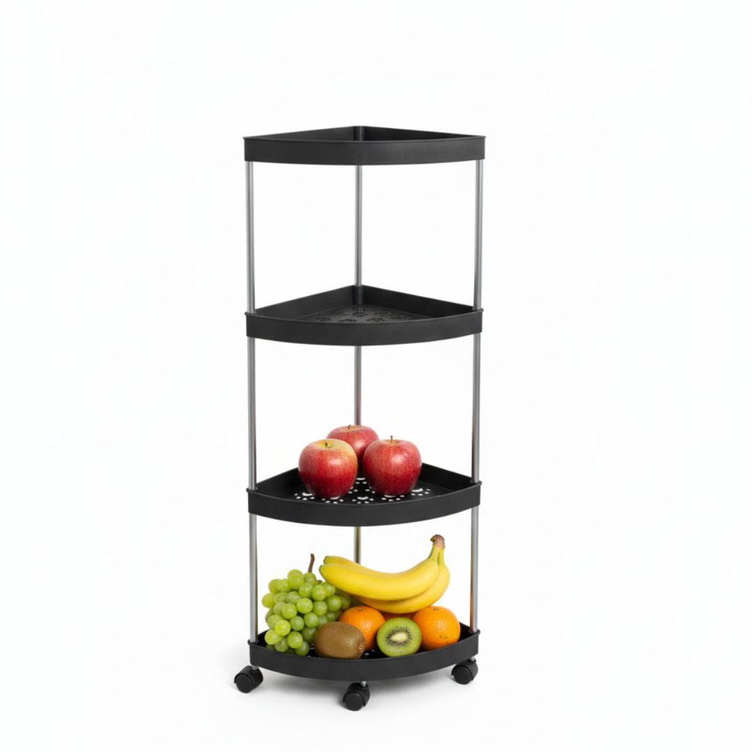 - Este práctico organizador esquinero de 4 niveles te permite mantener tus frutas, especias o utensilios perfectamente ordenados, ocupando el mínimo espacio.
