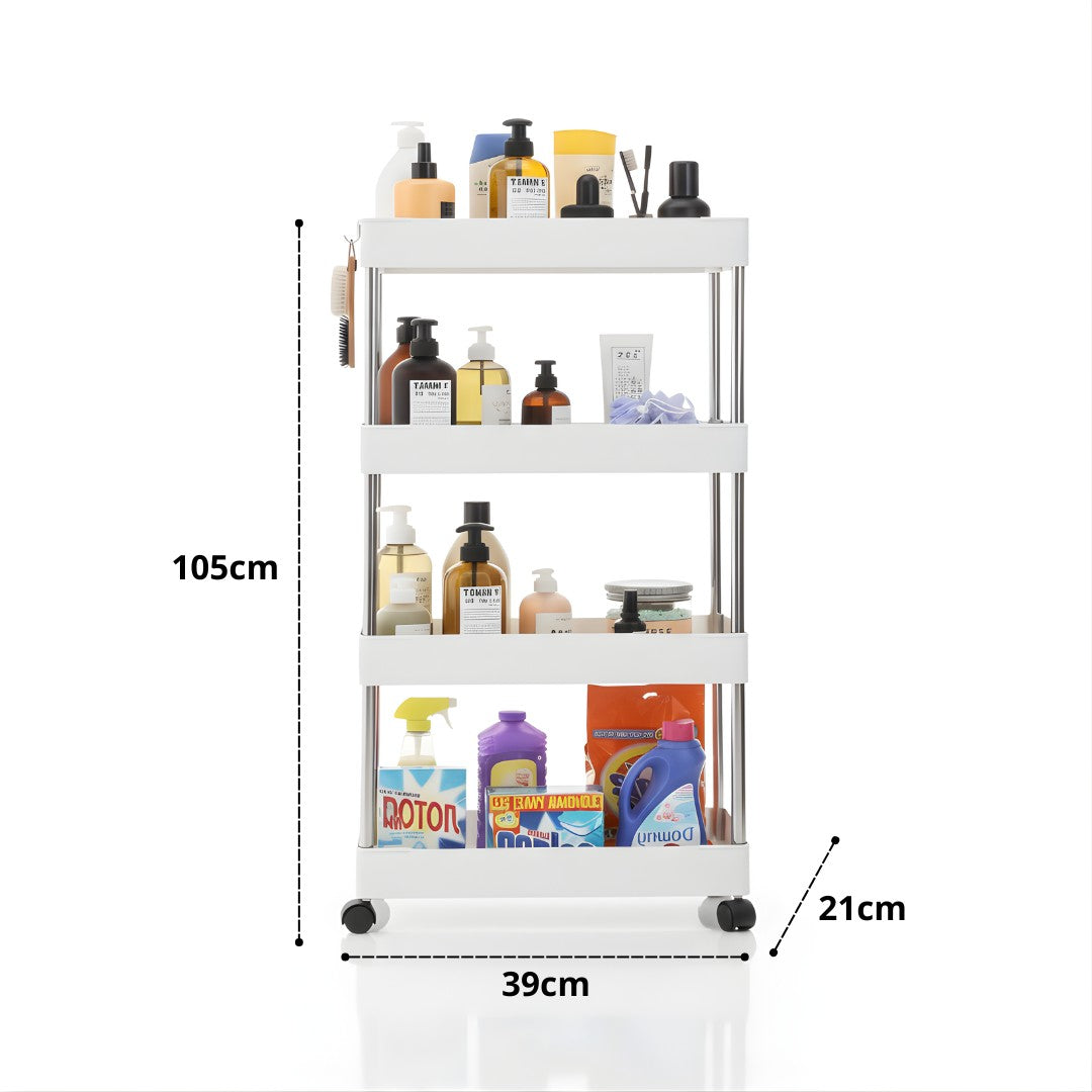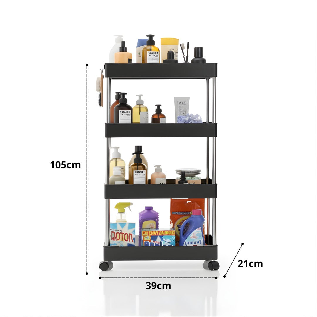 - Convierte cualquier espacio en un ambiente ordenado y funcional. Este carrito organizador multiusos de 4 niveles es la solución perfecta para mantener tus artículos siempre a la mano.