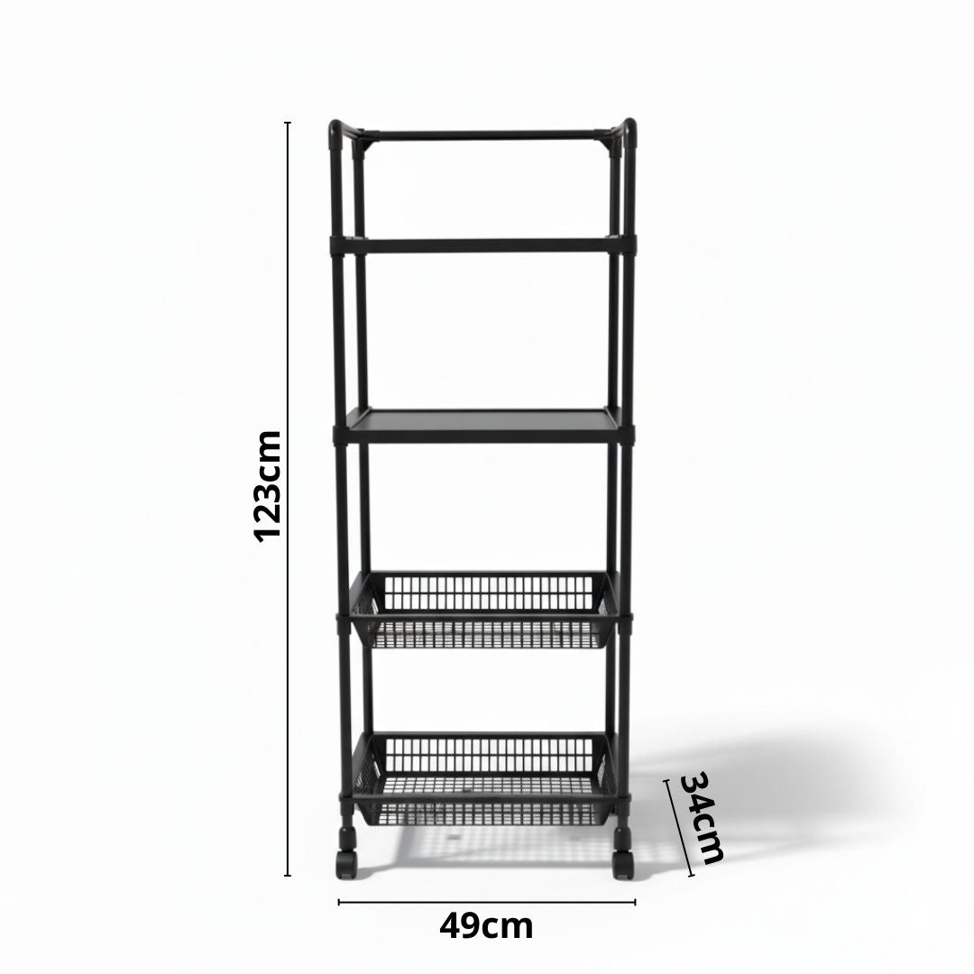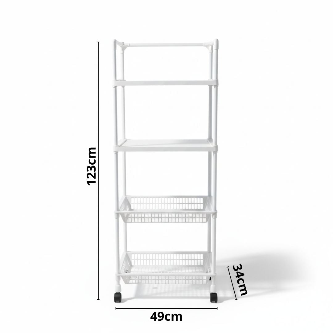 Carrito Organizador de Cocina Multiusos 4 Niveles con Ruedas 123x49x35CM