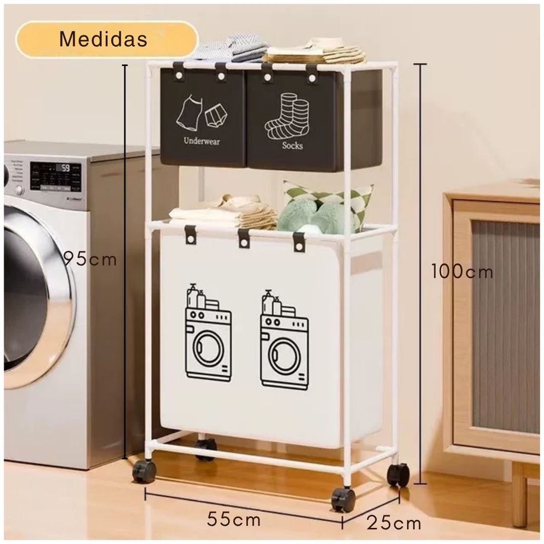 - Gran Capacidad: El diseño abierto y amplio de cada cesto permite almacenar una cantidad considerable de ropa.