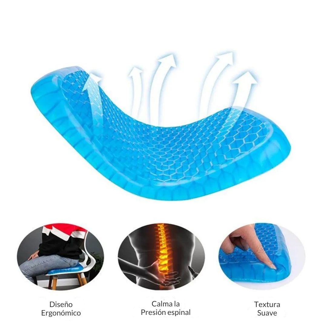 - Cojín de gel, diseño de panal transpirable, punto de absorción, cojín para aliviar la presión espinal y mantener una buena postura.