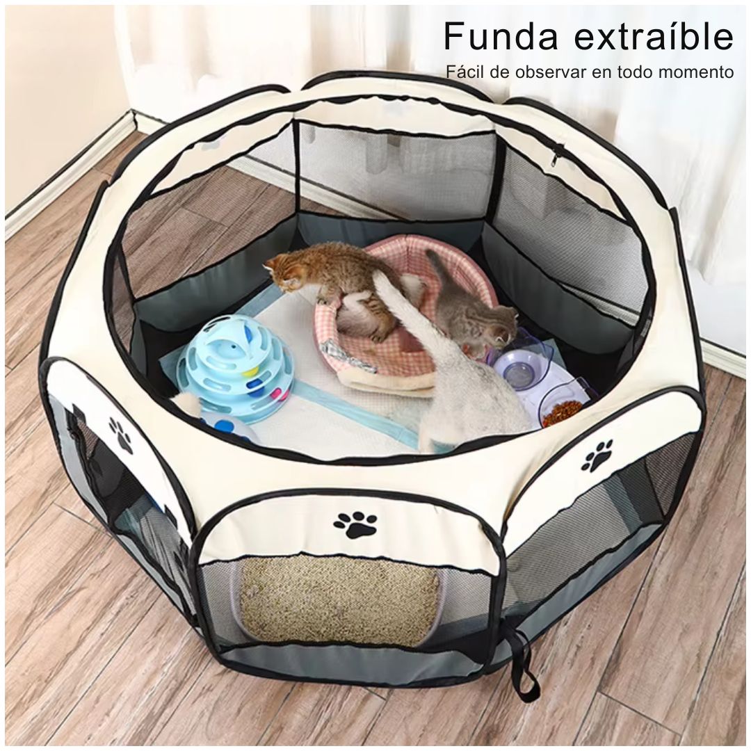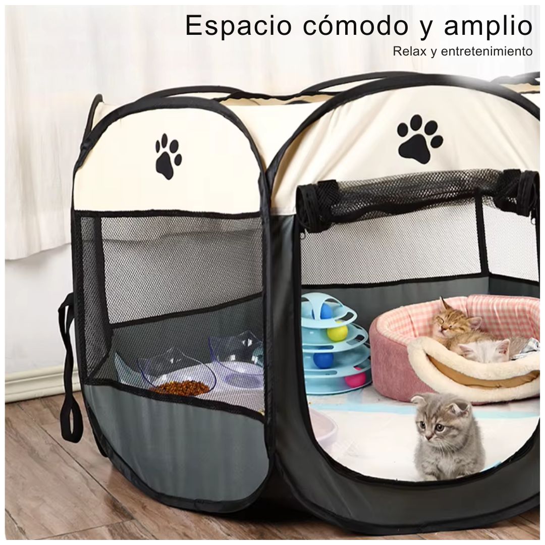 - ¡El espacio perfecto para tu mejor amigo peludo! Este Corral Cama para Mascotas ofrece comodidad, seguridad y libertad para gatos, perros pequeños, cachorros o incluso conejos. Ideal tanto para interiores como exteriores, su diseño plegable lo hace práctico y fácil de transportar.