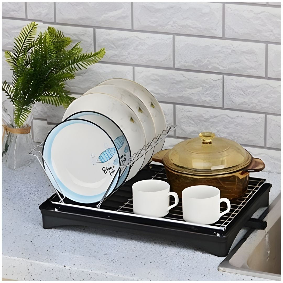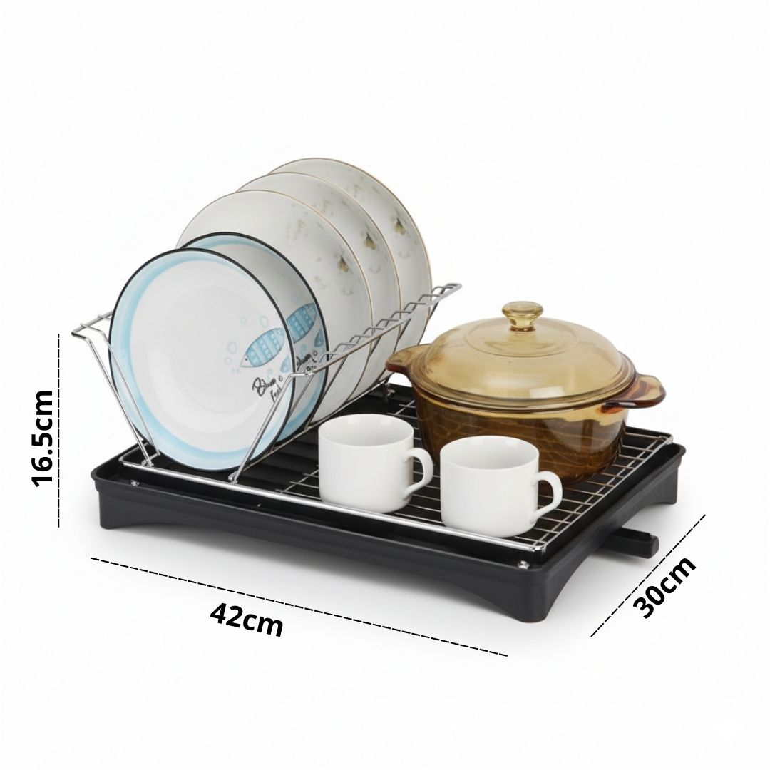 Escurridor de Platos Vasos Acero al Carbono con Sistema de Drenaje 16.5x42x30cm