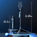 - Altura ajustable hasta 2.15 m: perfecto para selfies de cuerpo entero, fotos en grupo y tomas de mayor alcance.