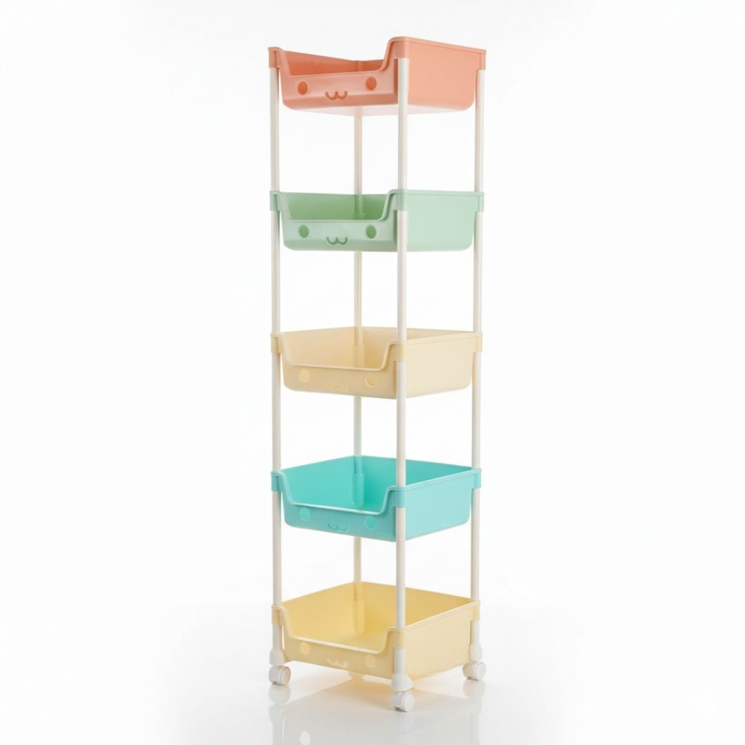 Estante Organizador de Juguetes Kawaii Multiusos Plegable de 5 Niveles con Ruedas