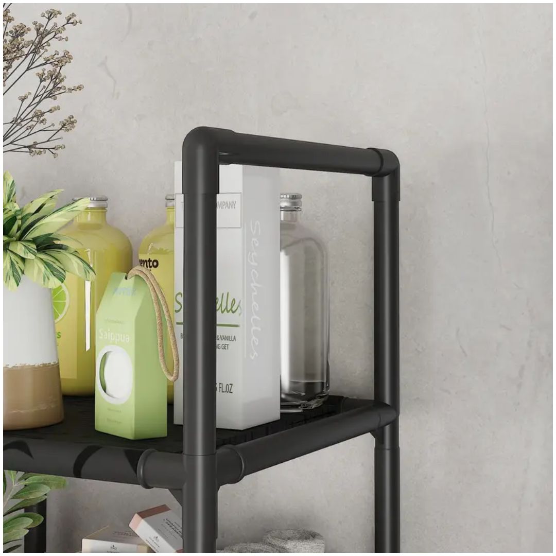 - Su estructura resistente y estable te permite almacenar detergentes, suavizantes, toallas, utensilios de limpieza y más, manteniendo todo al alcance y perfectamente ordenado.