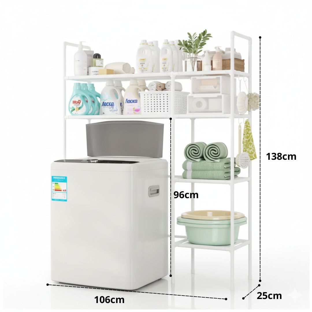 Estante Organizador Multiusos para Lavadora Baño 2 Niveles 2 Cuerpos 138x106x25cm