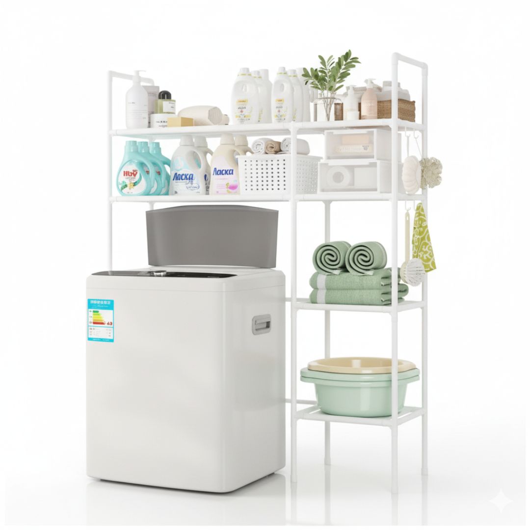 - Estante Organizador para Lavadora y Baño – Ahorra Espacio con Estilo.