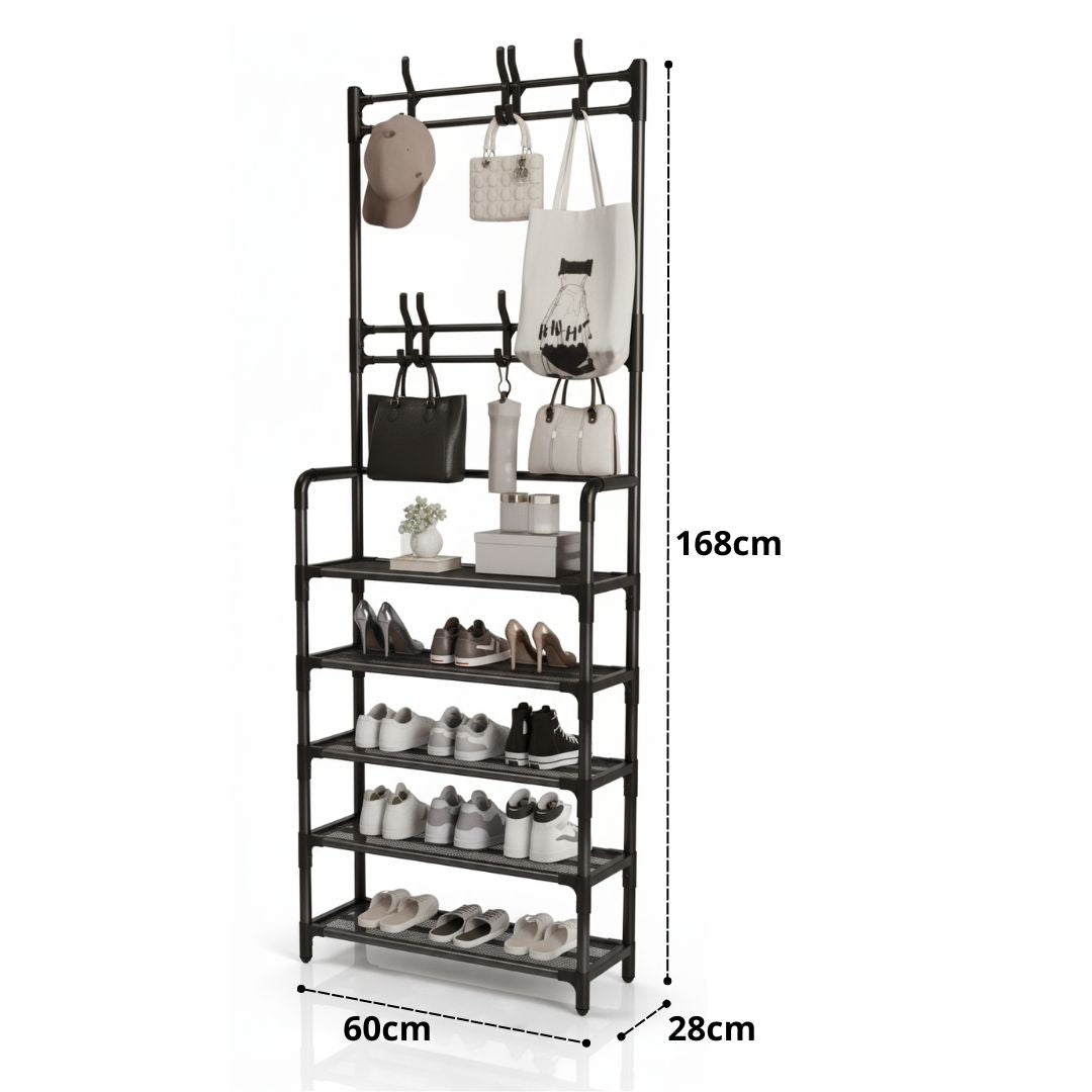 - Multiusos: ideal para colgar abrigos y otras prendas de vestir, así como accesorios como monederos y bufandas. Los estantes se pueden utilizar para almacenar zapatos, material de lectura y cualquier otro artículo pequeño.