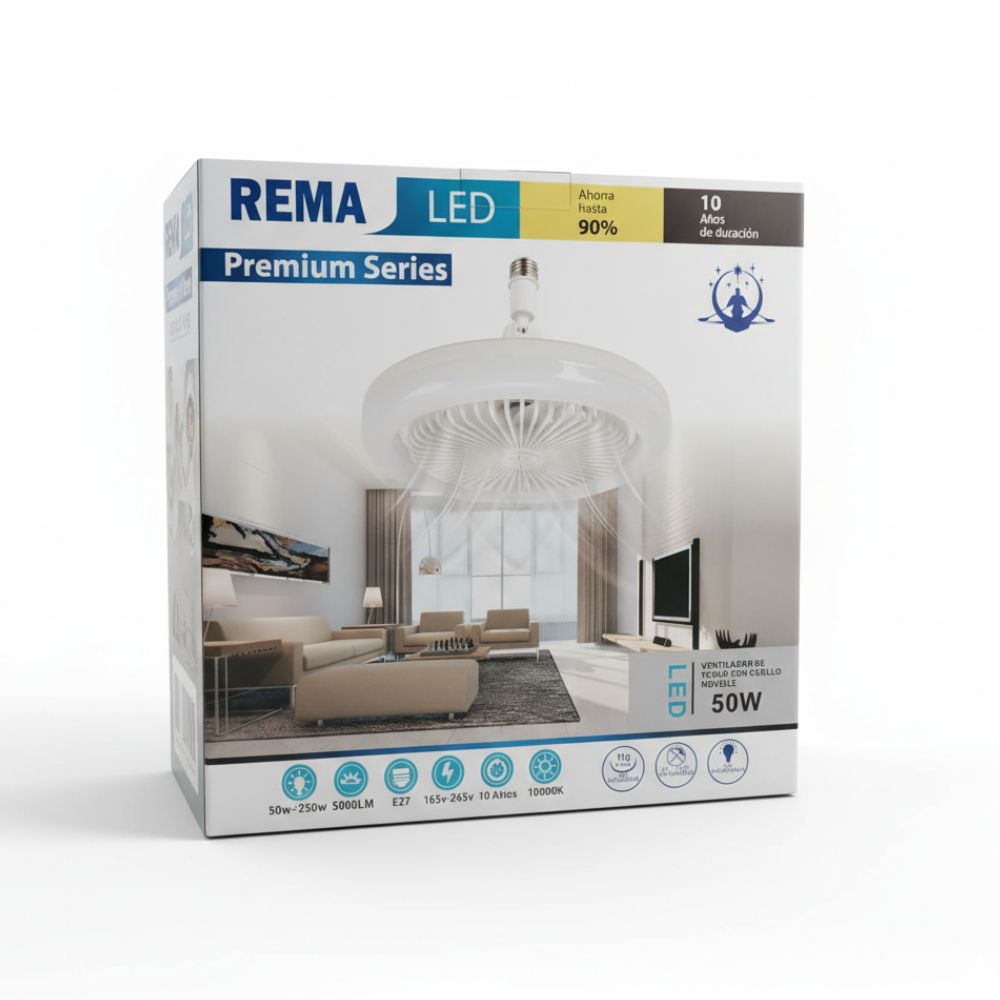 - El Foco LED con Ventilador REMA Premium Series 50W combina iluminación potente y ventilación eficiente en un solo equipo, ofreciendo una solución práctica y moderna para el hogar u oficina.