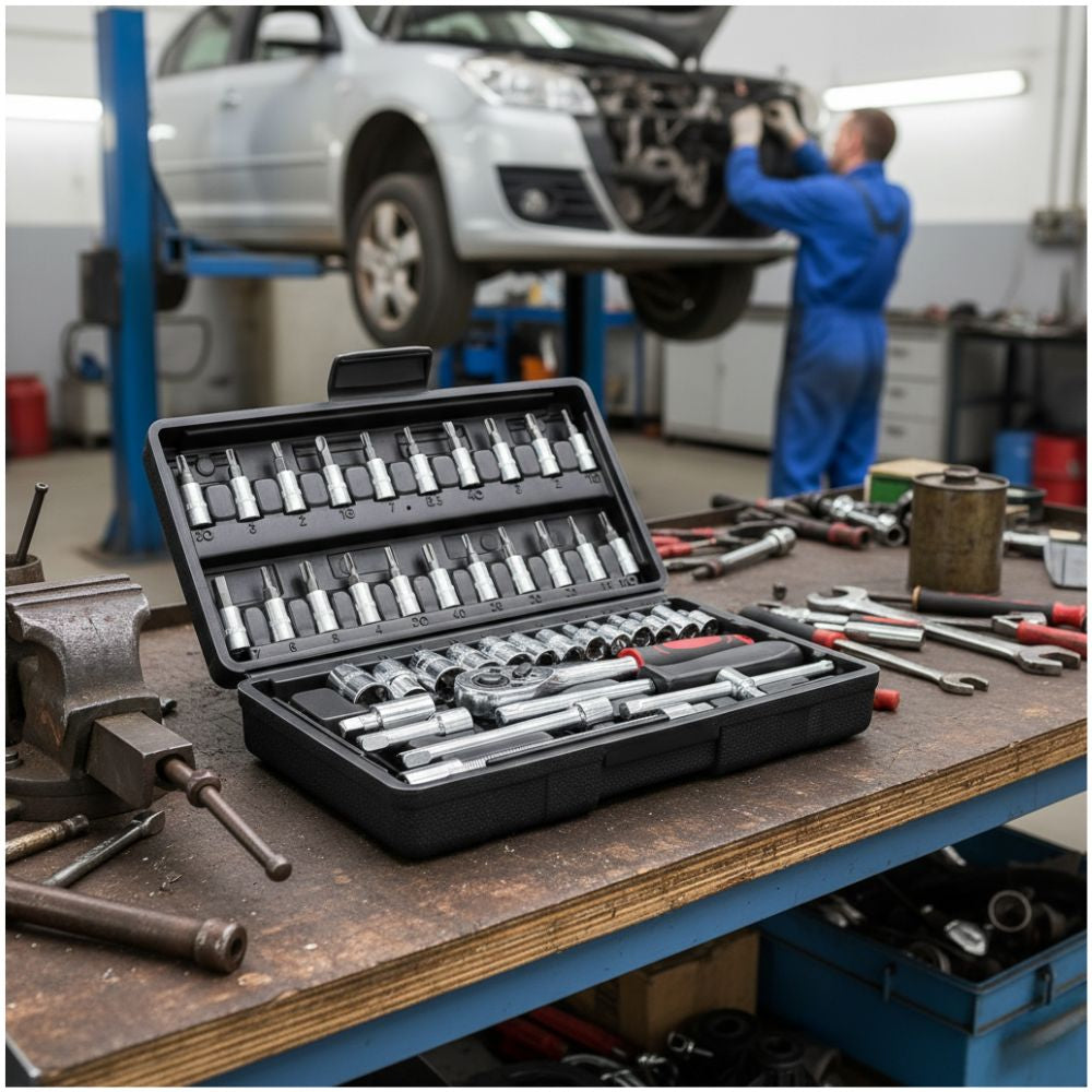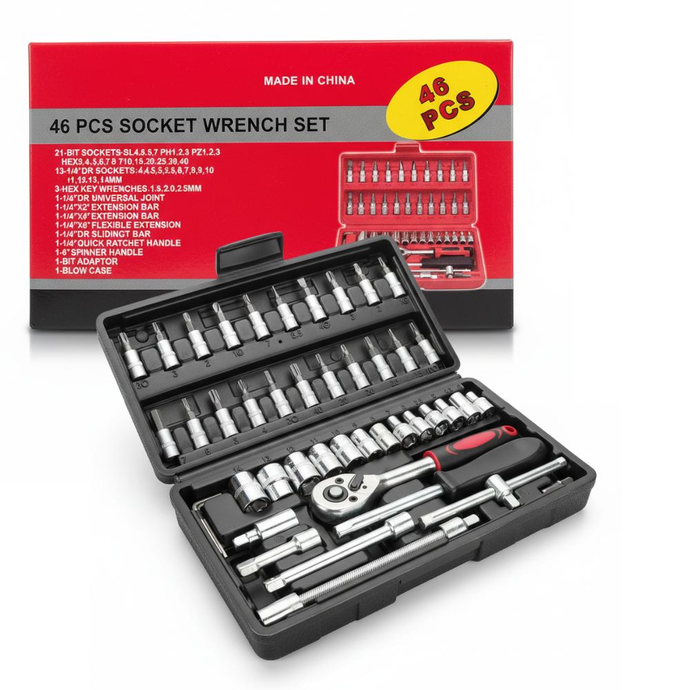 - El Juego de Llaves de Vaso de 46 Piezas es una solución completa y versátil para trabajos de mantenimiento, reparación y ensamblaje.
