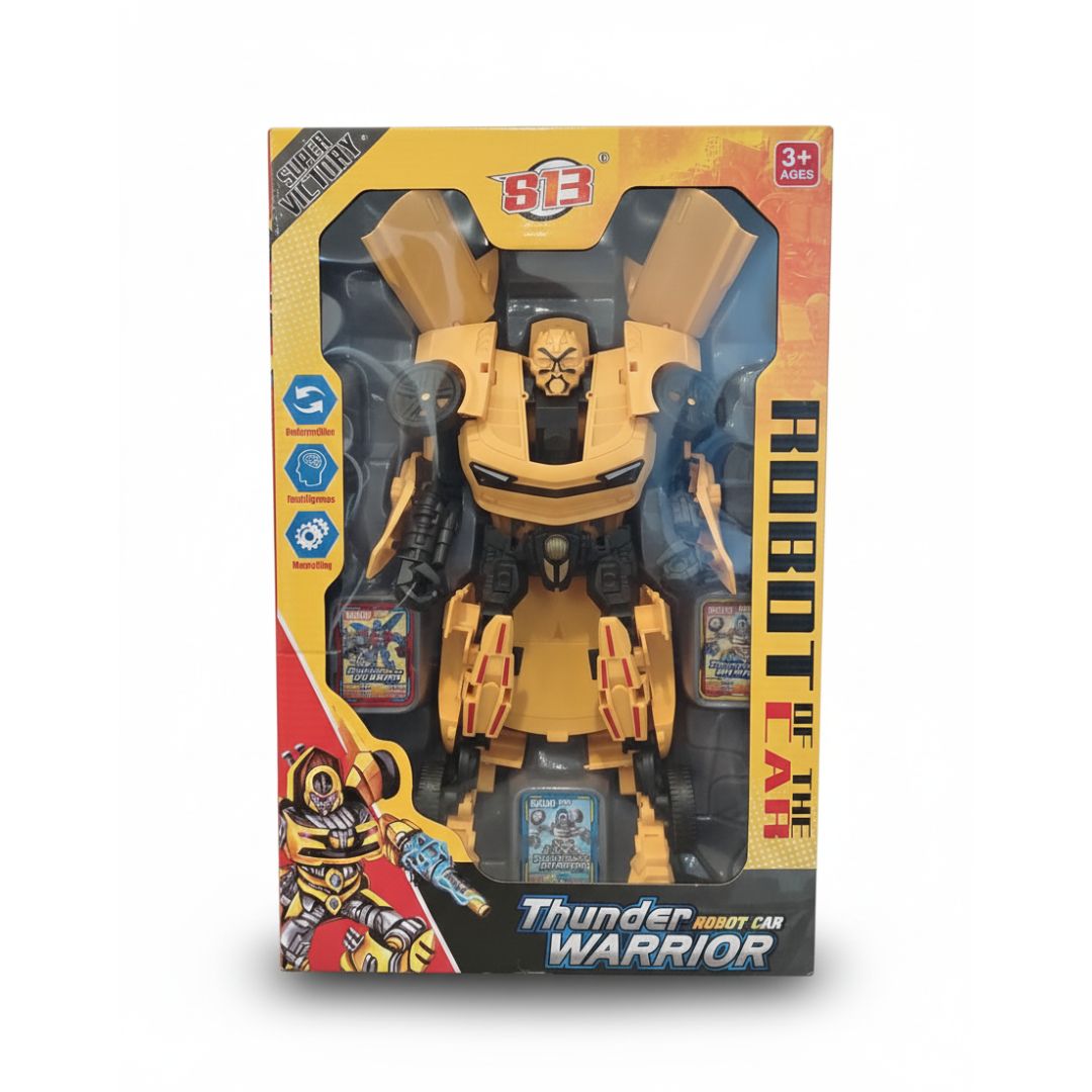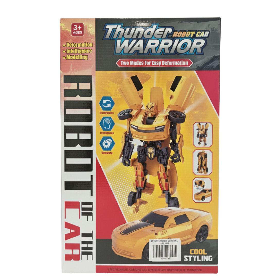 - Descubre la emoción de la transformación con el Thunder Robot Car Warrior. Este increíble juguete se convierte fácilmente de un auto deportivo de alta velocidad en un poderoso robot guerrero, listo para cualquier aventura.