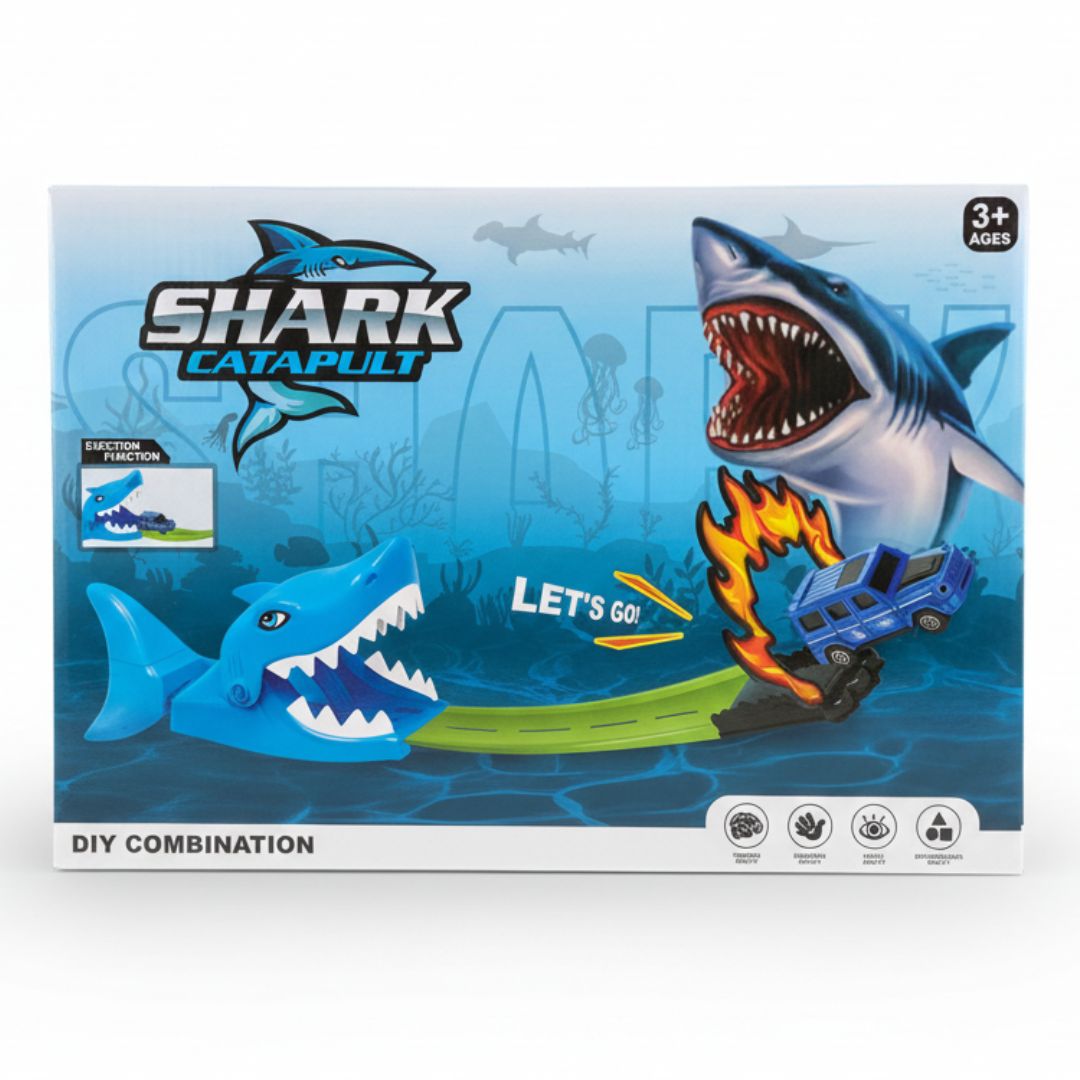 Juguete Pista Ataque Tiburón Para Niños Shark Catapulta Lanzador con Auto