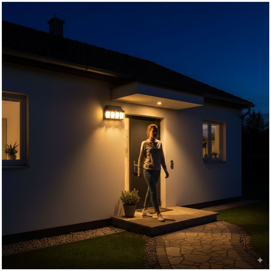 - Sensor inteligente: Detecta movimiento en un ángulo de 120° y hasta 8 metros de distancia, encendiéndose automáticamente cuando lo necesitas.