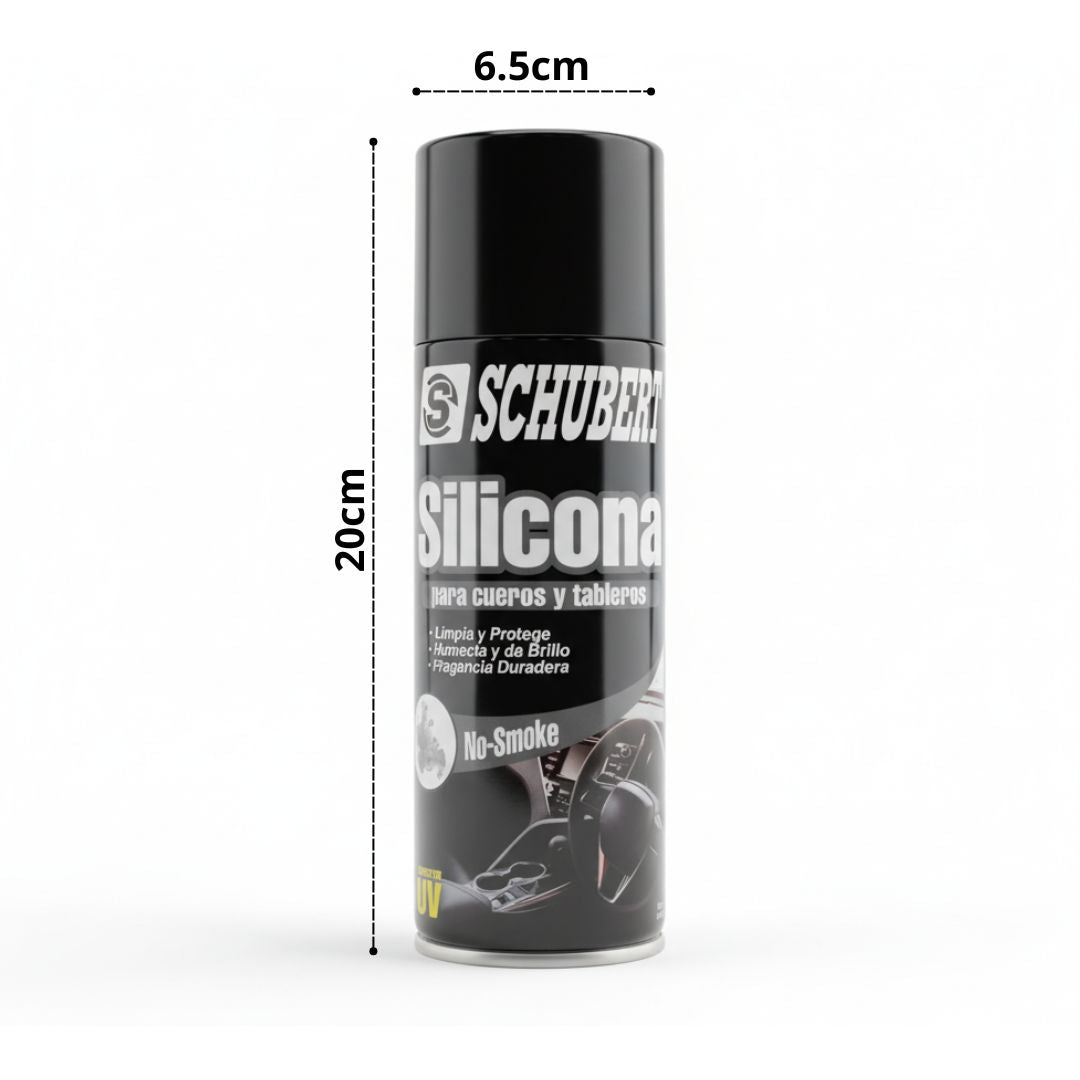 - Silicona en Spray Schubert para cueros y tableros es una solución óptima y confiable para el cuidado y mantenimiento del interior de tu vehículo.