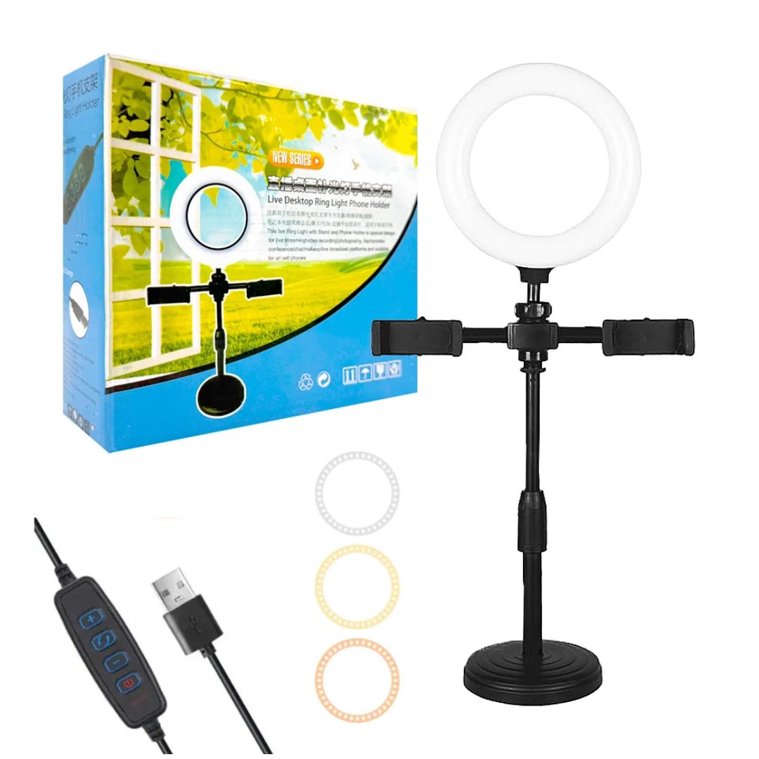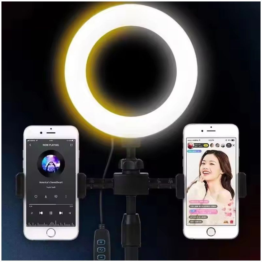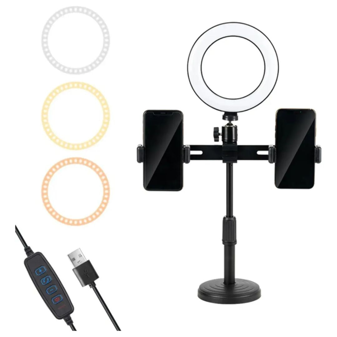 Lámpara Aro Luz Led Con Doble Soporte Para Celular Parante Ajustable