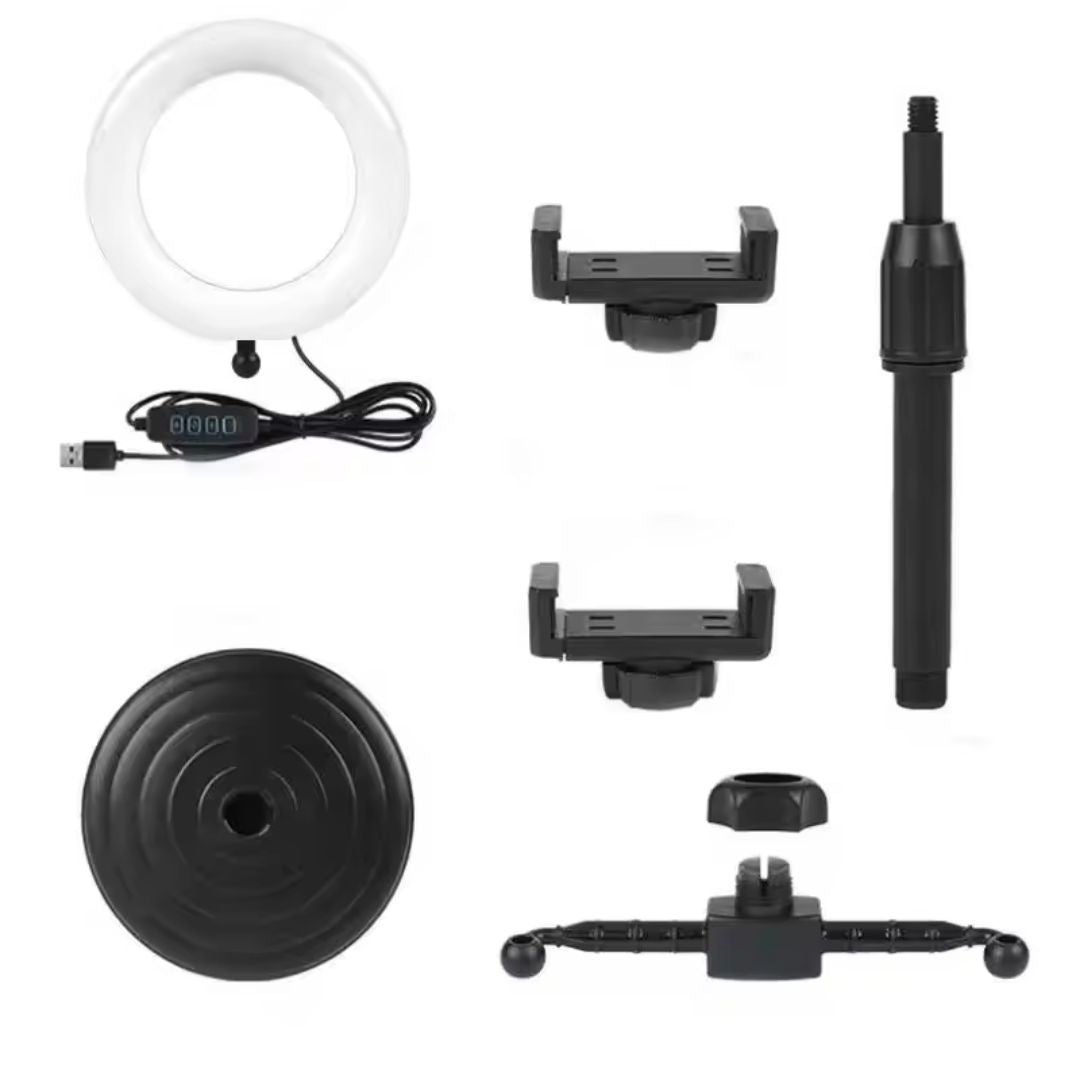 - Tipo: Lámpara de aro LED con doble soporte para celular