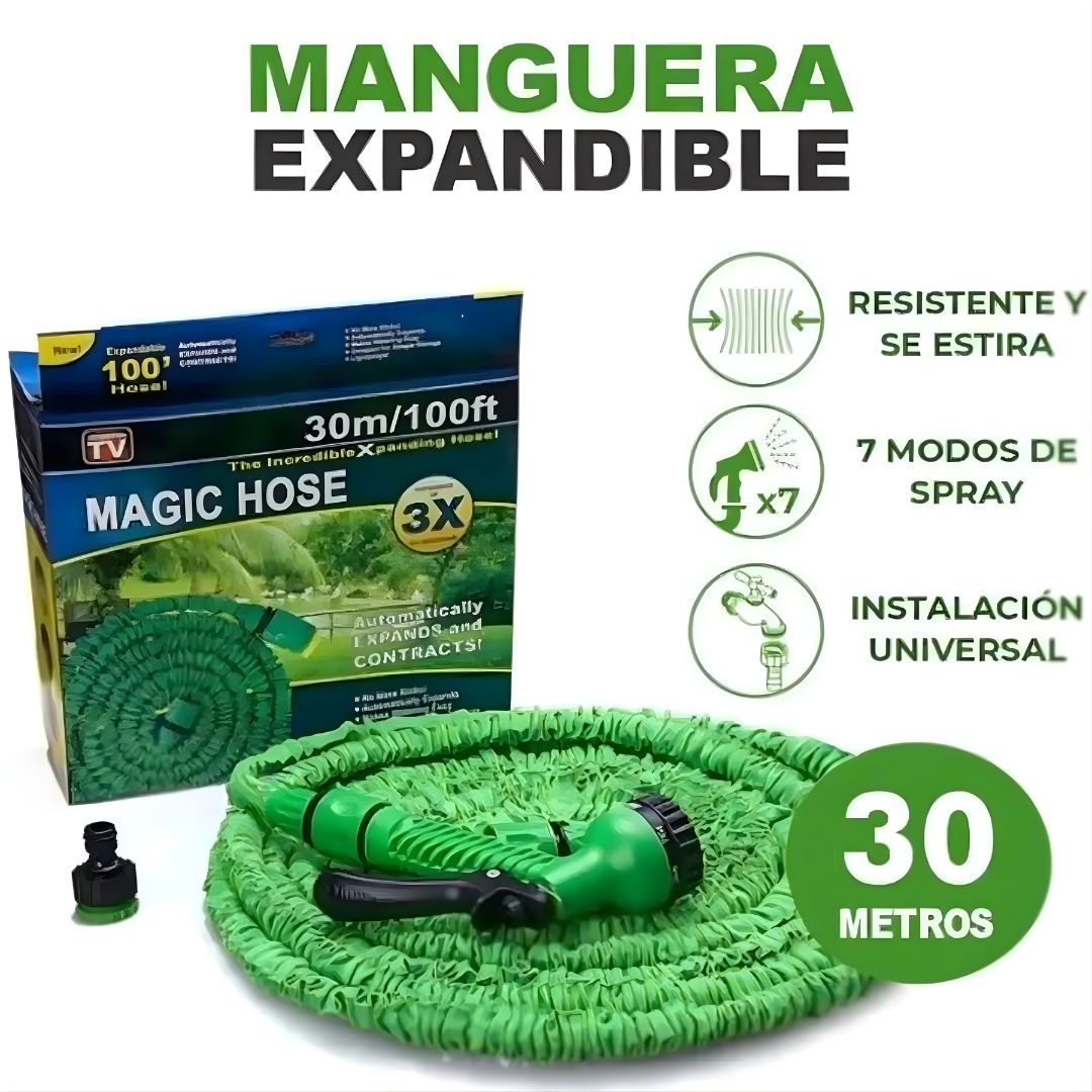 - Manguera Extensible Magic Hose 30 m / 100 ft – ¡La manguera que se expande hasta 3 veces su tamaño!