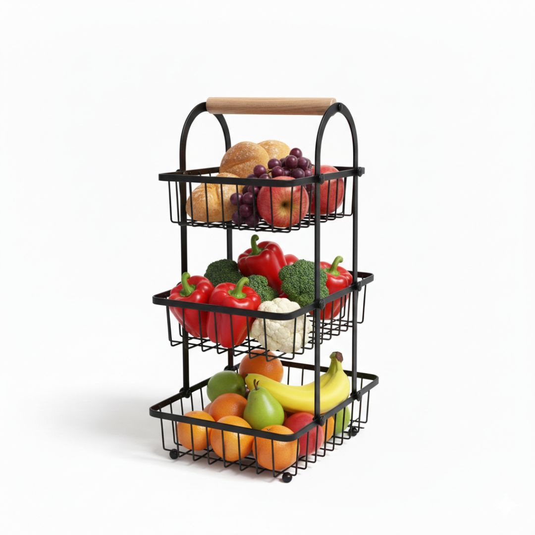 - Organiza tu cocina con estilo gracias a la Canastilla Organizadora para Frutas y Verduras de 3 niveles.