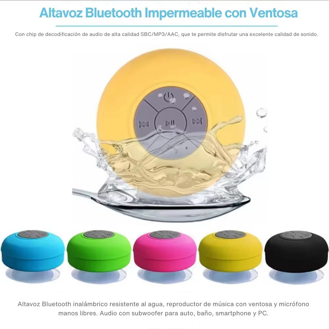 - Disfruta de tu música favorita en cualquier lugar con el parlante Bluetooth impermeable con ventosa, diseñado para acompañarte en la ducha, el baño, el auto o tus momentos de descanso.