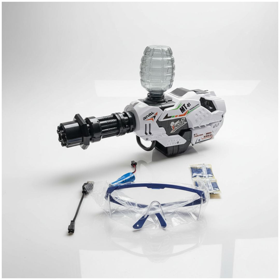 - Su diseño inspirado en un cañón Gatling y su sistema eléctrico automático te permiten disparar balines de gel a gran velocidad, creando batallas llenas de emoción.
