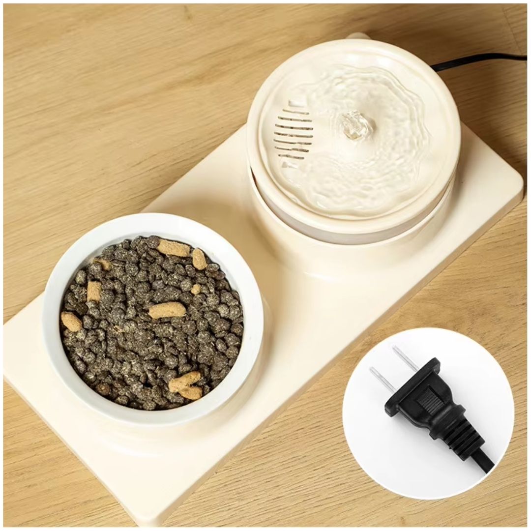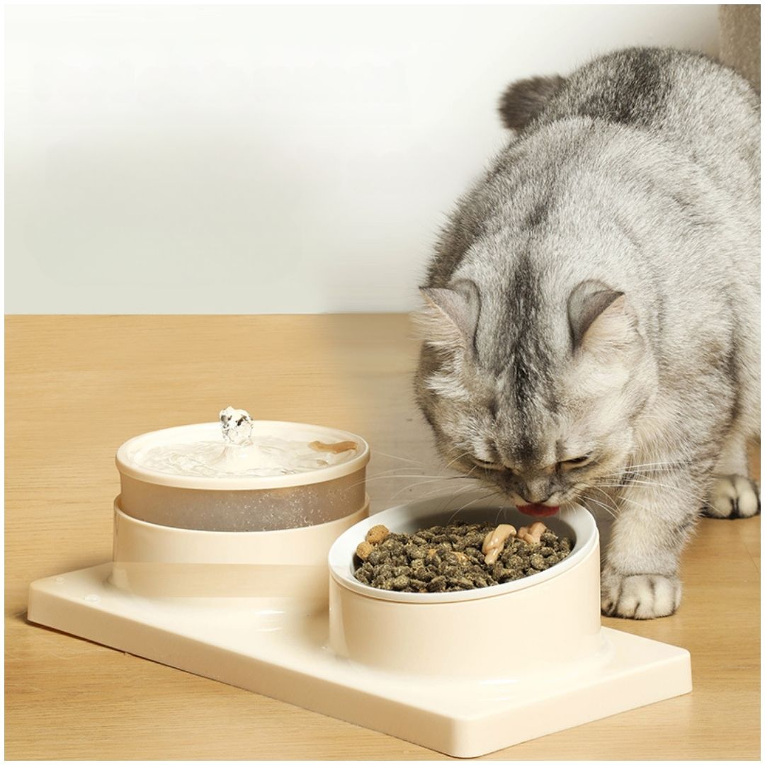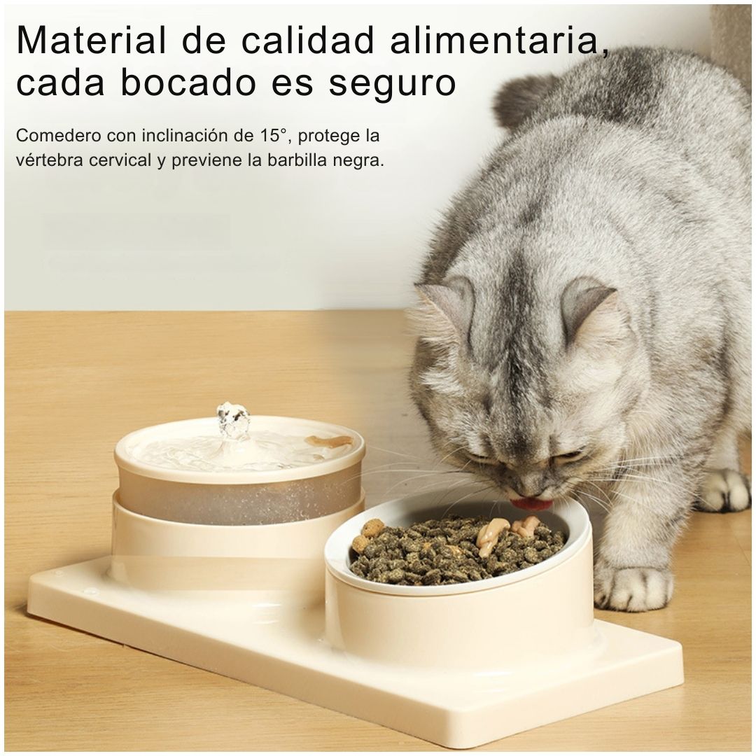 - Mantén a tu mascota feliz, sana y siempre bien hidratada con este comedero y bebedero 2 en 1 con fuente eléctrica integrada. Diseñado para ofrecer comodidad, higiene y salud, combina un plato inclinado de 15° que protege la columna cervical y evita la “barbilla negra”, con una fuente de agua de flujo constante que garantiza frescura y pureza en cada sorbo.
