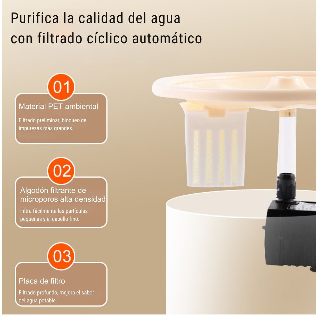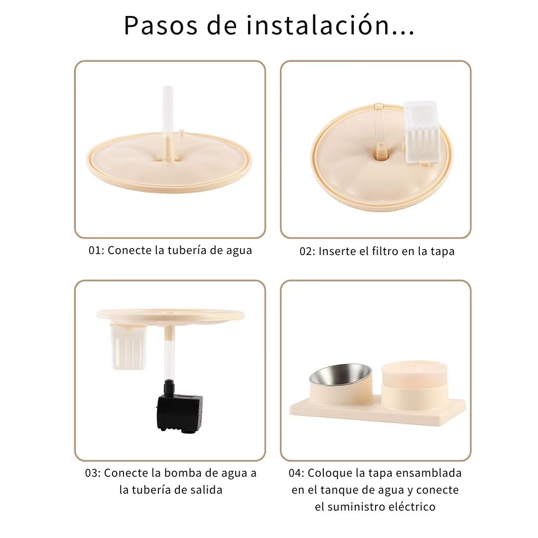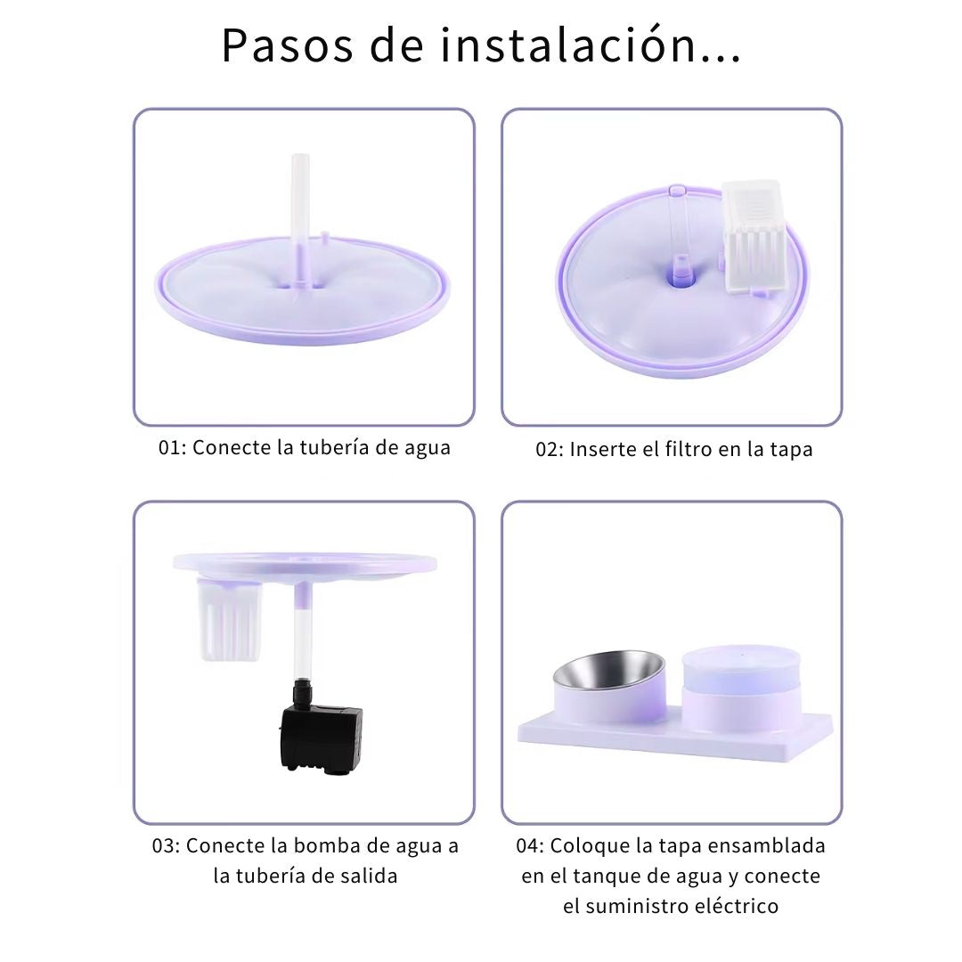 - Dile adiós a los tazones de agua estancada y cuida la salud de tu engreído con este práctico sistema todo en uno.