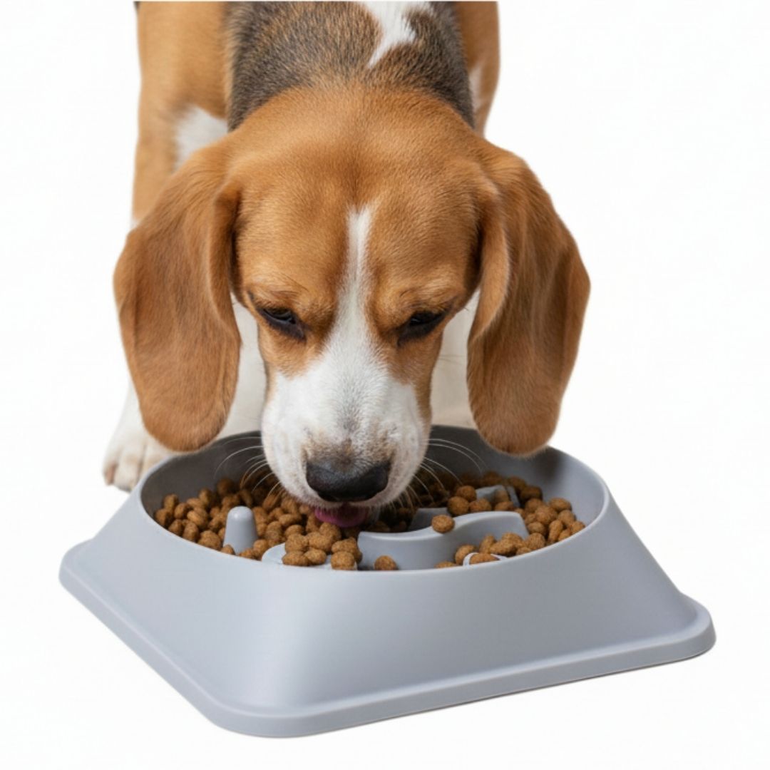 - Esta diseñado para ralentizar la ingesta de alimento, ayudando a prevenir problemas digestivos y fomentando una mejor digestión. Estos platos tienen formas o laberintos que obligan al perro a mover la comida, haciendo que coma más lento