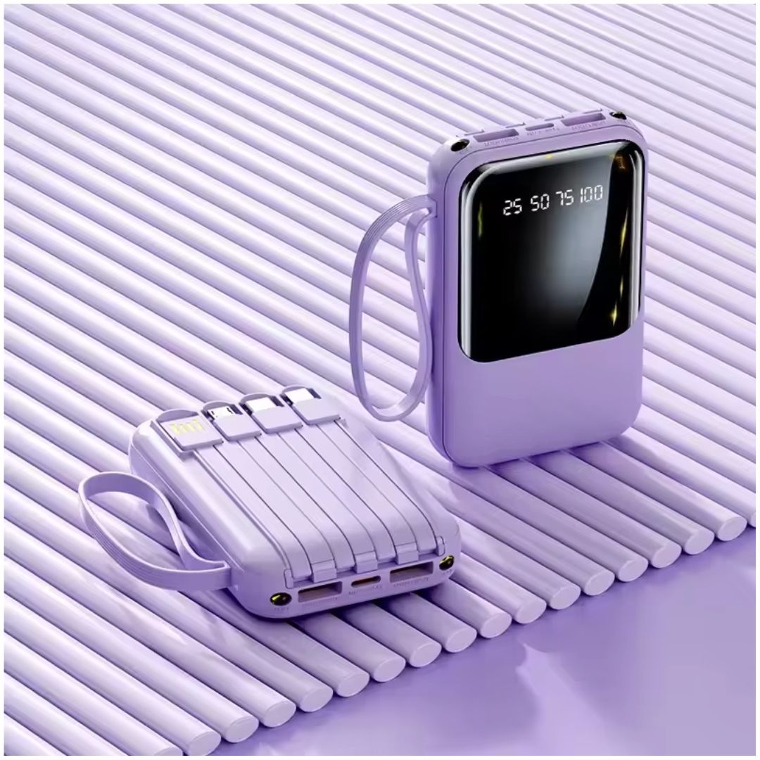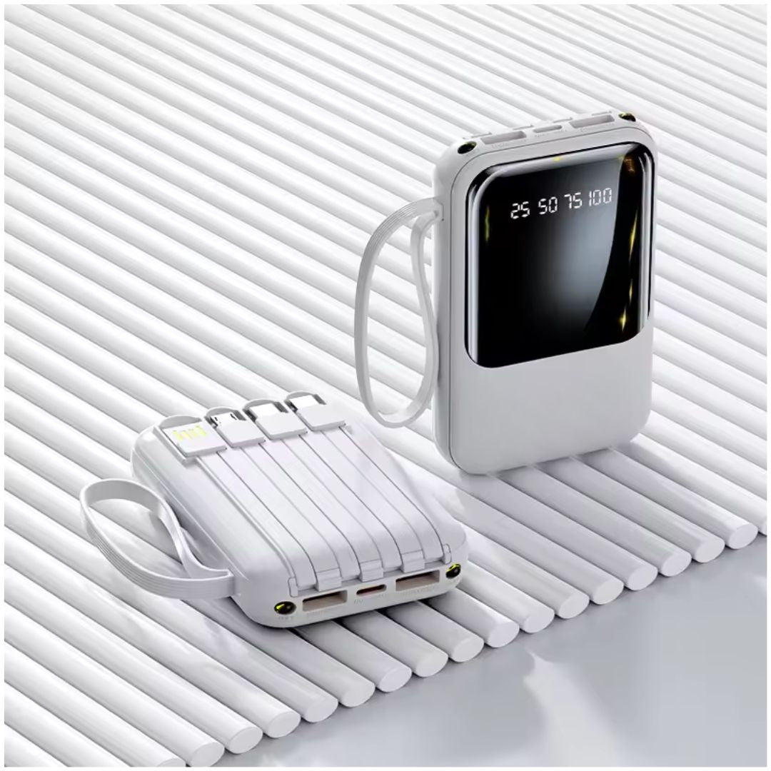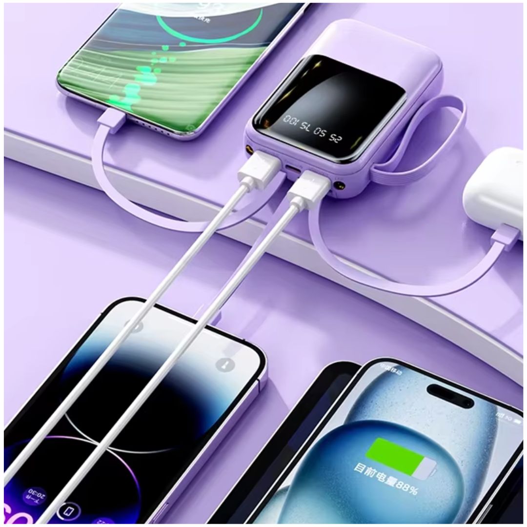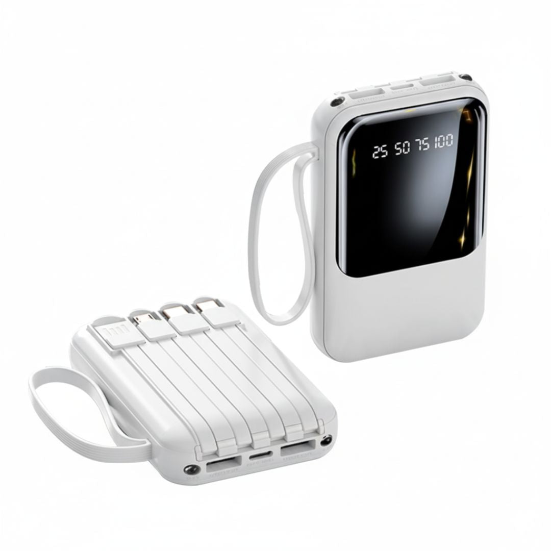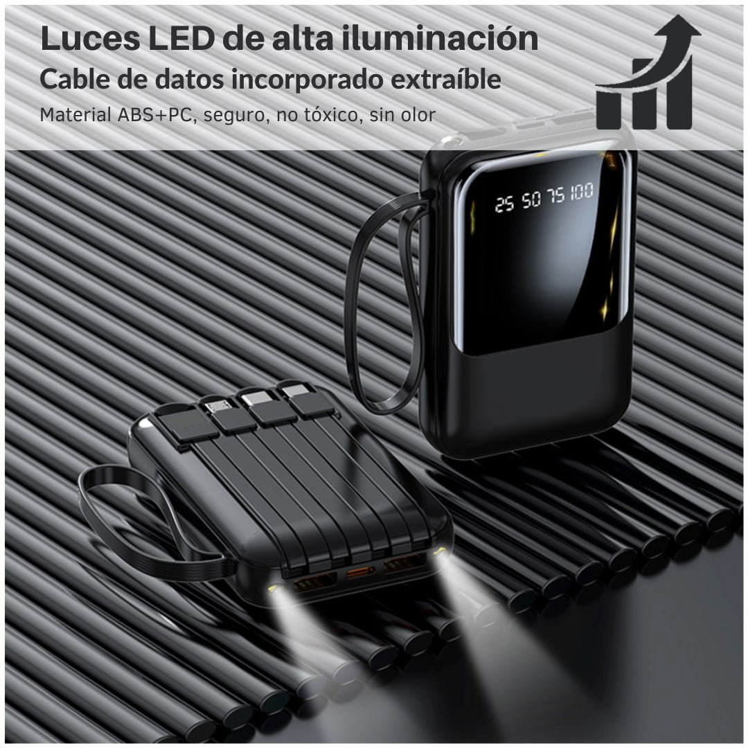 - Versatilidad: Incluye linterna LED integrada y 4 cables (USB, Lightning, V8 y Tipo-C), adaptándose a cualquier situación o dispositivo.
