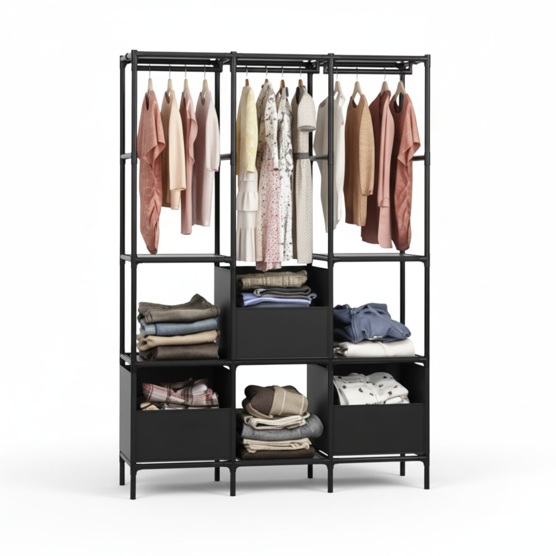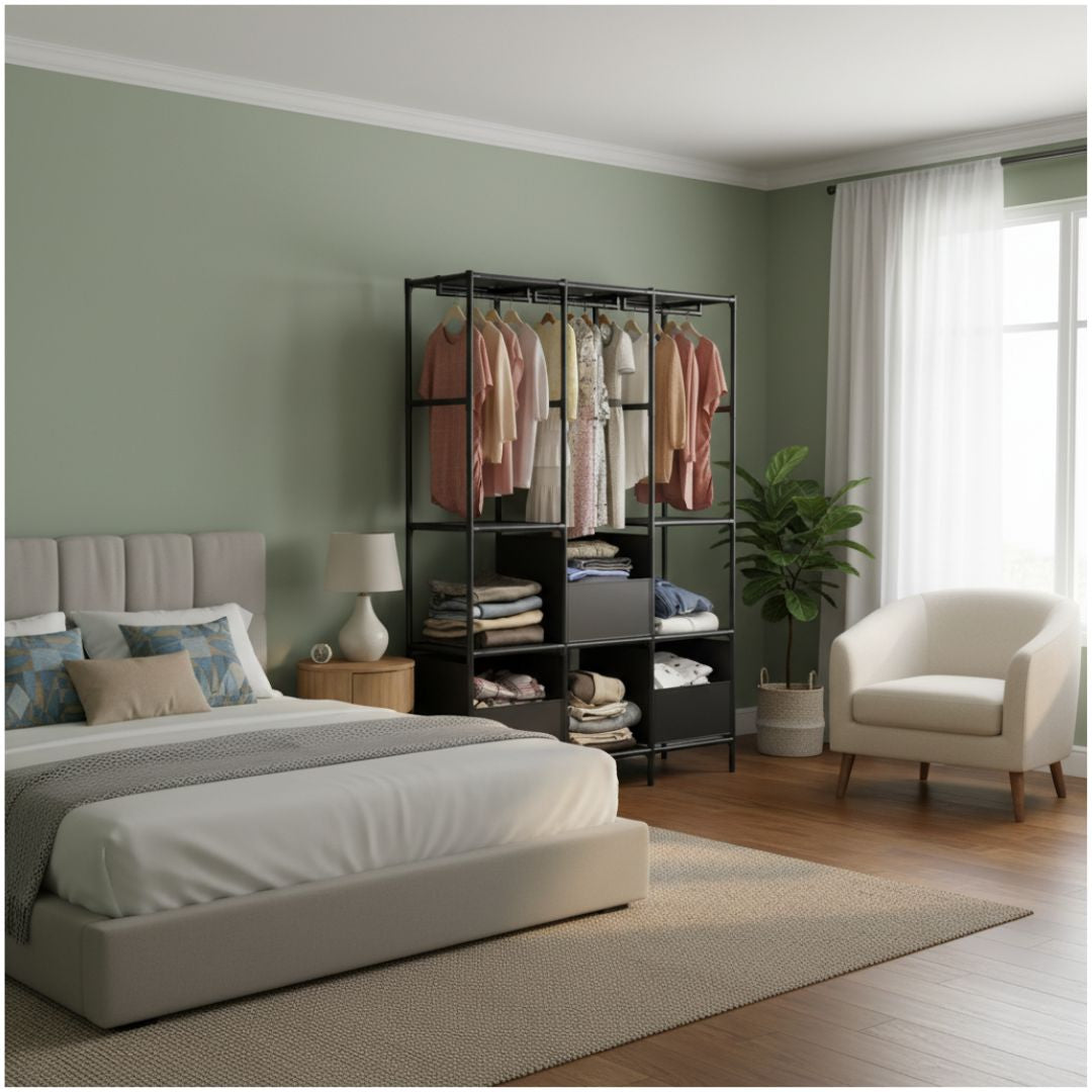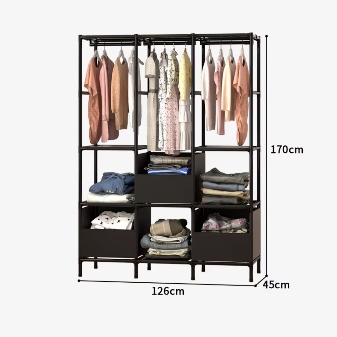 Ropero Colgador Multifuncional C3 Organizador de Ropa 3 Cuerpos 170x126x45cm