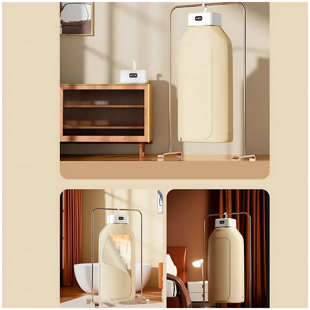 - Llévalo contigo a donde vayas y mantén tu ropa seca, limpia y lista en todo momento. ¡Una solución inteligente para el hogar moderno o en movimiento!