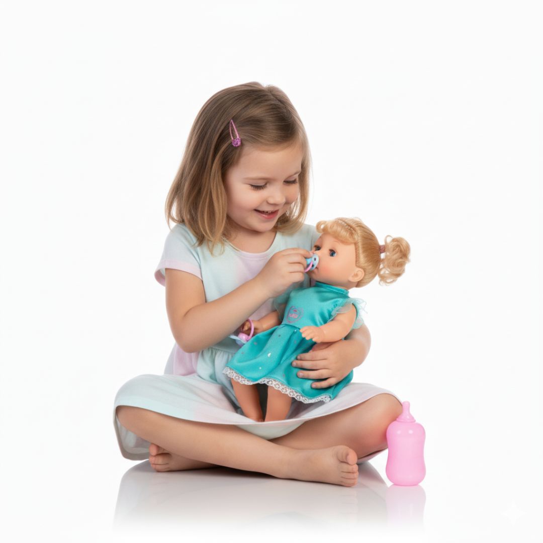 - Con solo alimentarla con su biberón, la muñeca llora lágrimas de verdad, creando una experiencia interactiva que encanta a los más pequeños.
