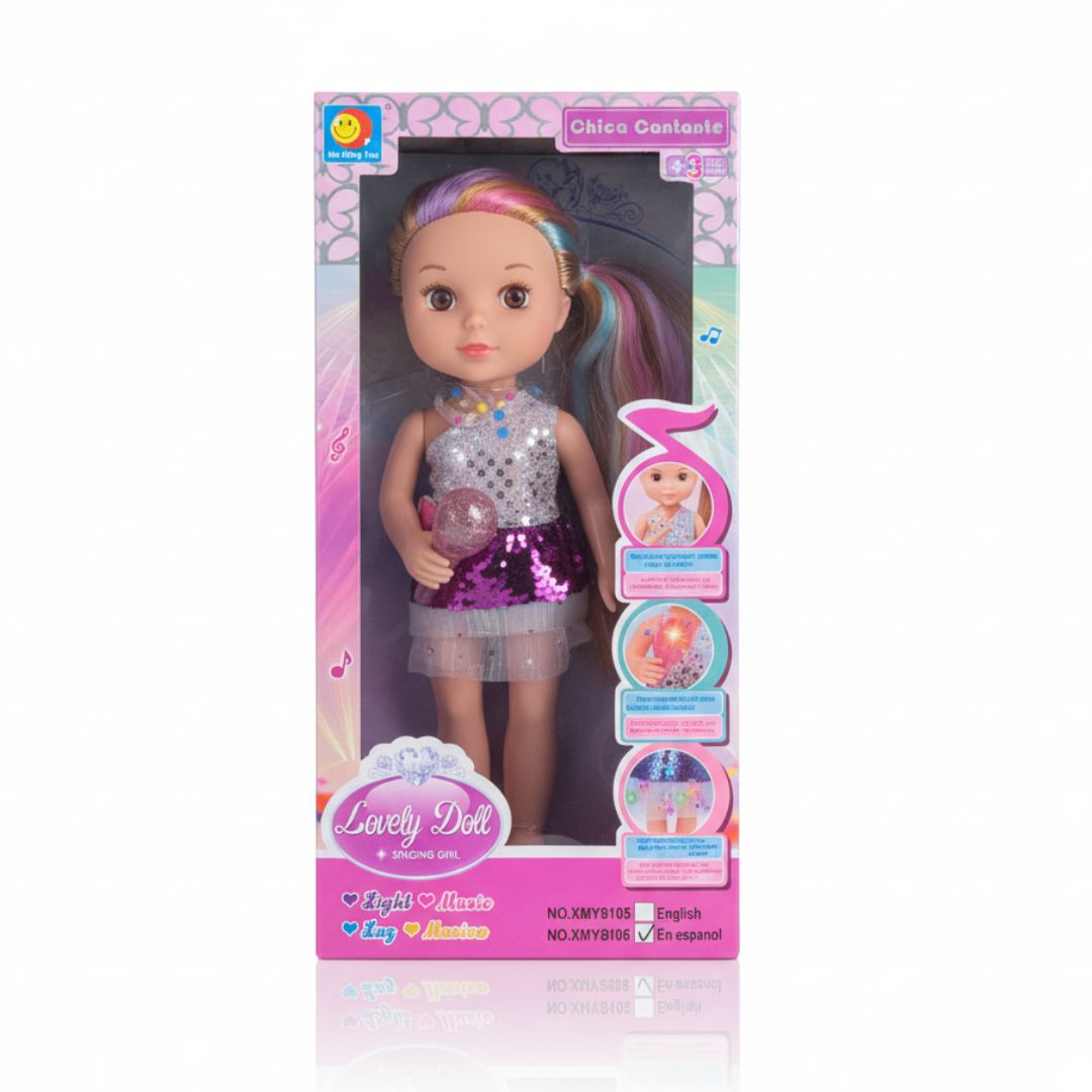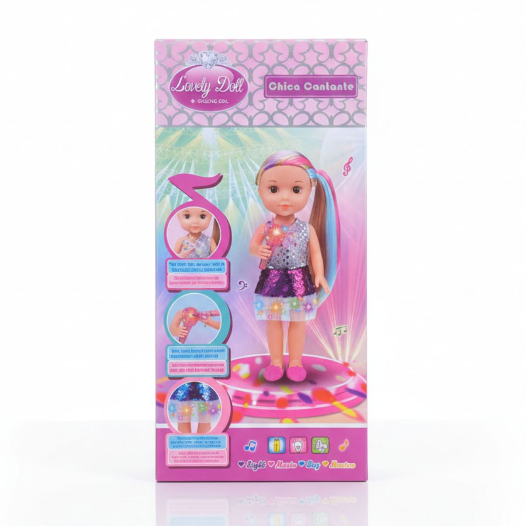- La Muñeca Chica Cantante “Lovely Doll – Shining Girl” es el juguete perfecto para niñas y niños que aman la música, el brillo y la diversión.