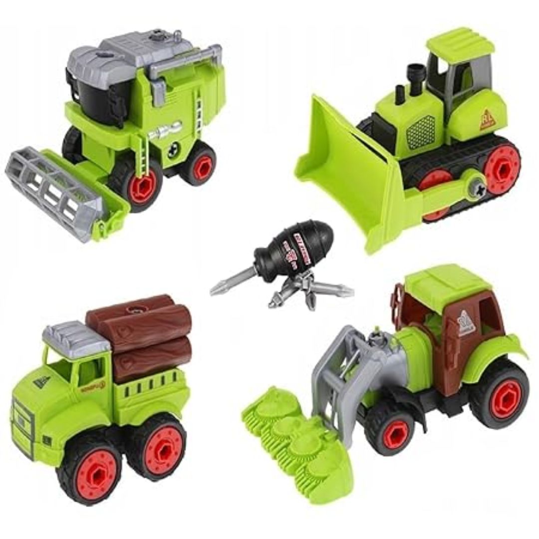 Set x4 Vehículos de Agricultura Juguete Didáctico Desarmable + Desarmador