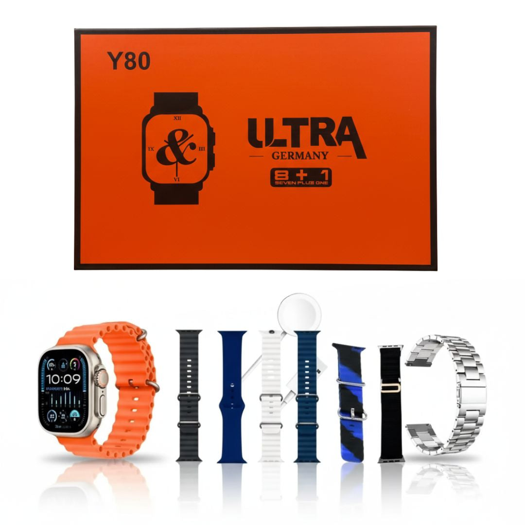 Smartwatch Y80 Ultra 9 en 1 Juego de 8 Correas + Cargador Inalámbrico + Protector