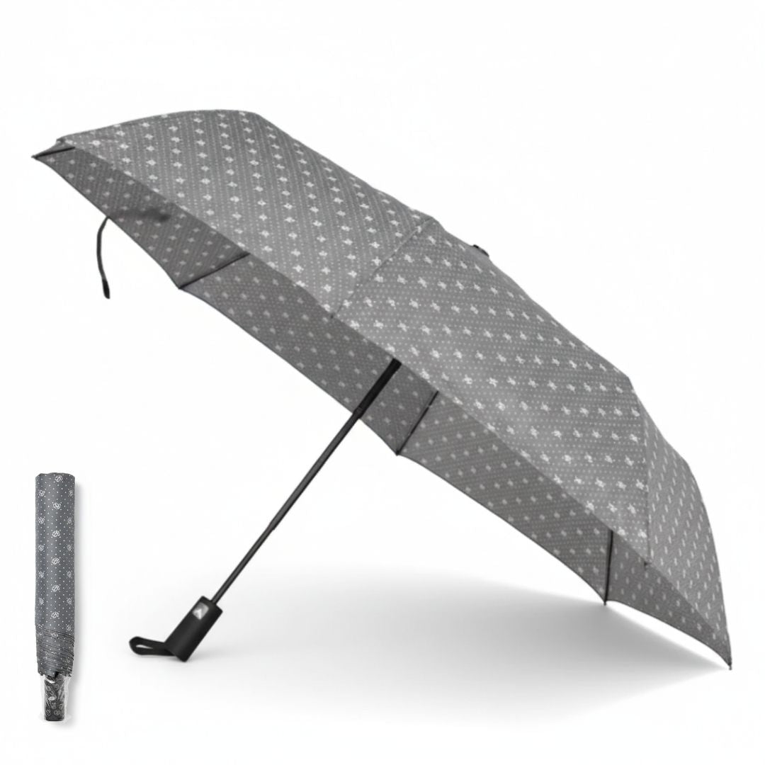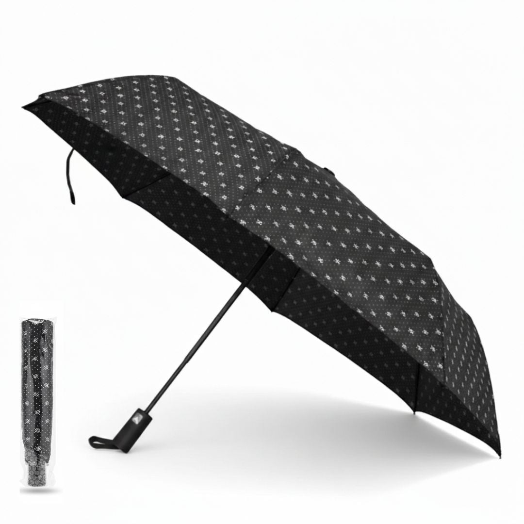 - Mantente protegido de la lluvia y el sol con este paraguas plegable de diseño moderno y compacto, pensado para acompañarte a diario sin ocupar espacio.