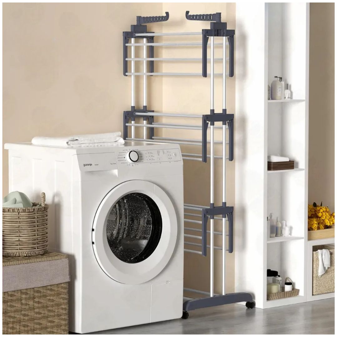 El tendedero de ropa de 4 niveles plegable con ruedas es la solución práctica y resistente para secar y organizar tu ropa en casa. Su diseño portátil y funcional ofrece un amplio espacio de colgado gracias a sus 4 niveles regulables y brazos laterales extensibles, perfectos para prendas grandes como sábanas y toallas.