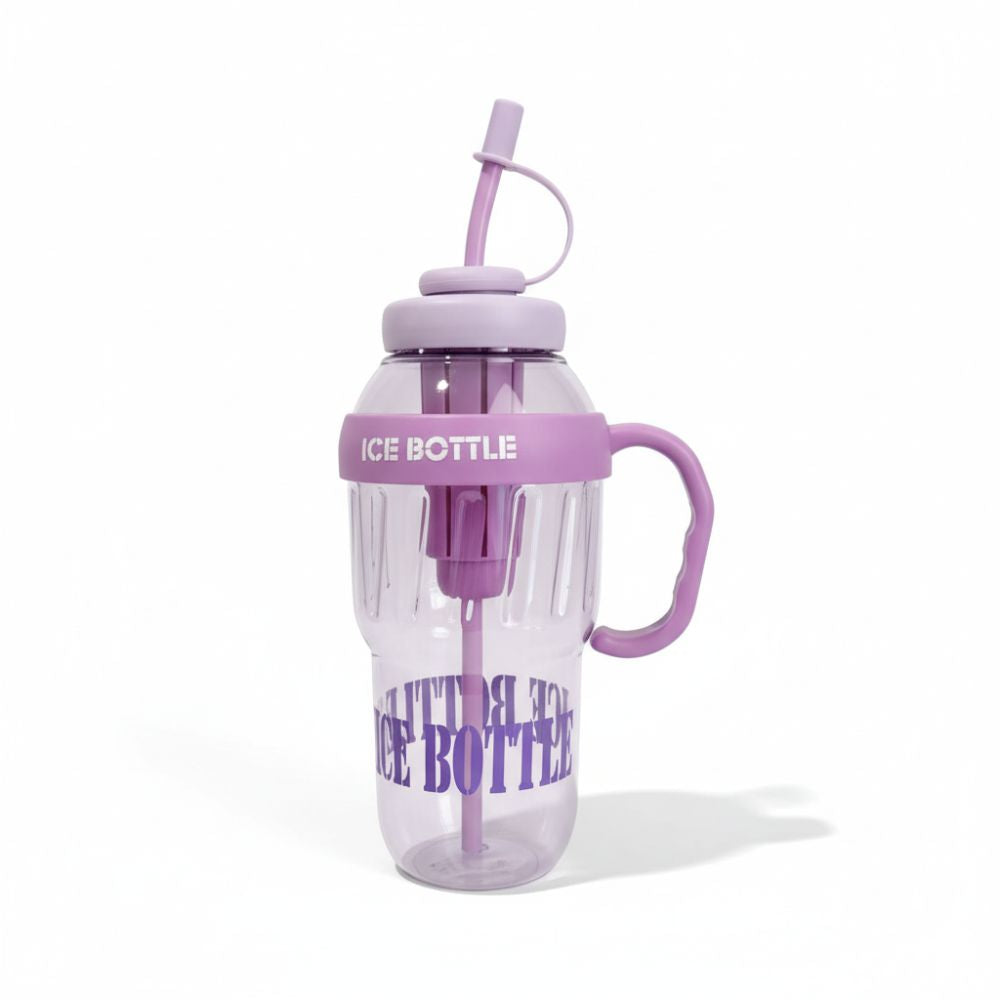 - Hidrátate de manera práctica y con estilo con la botella Ice Bottle con sorbete y asa.