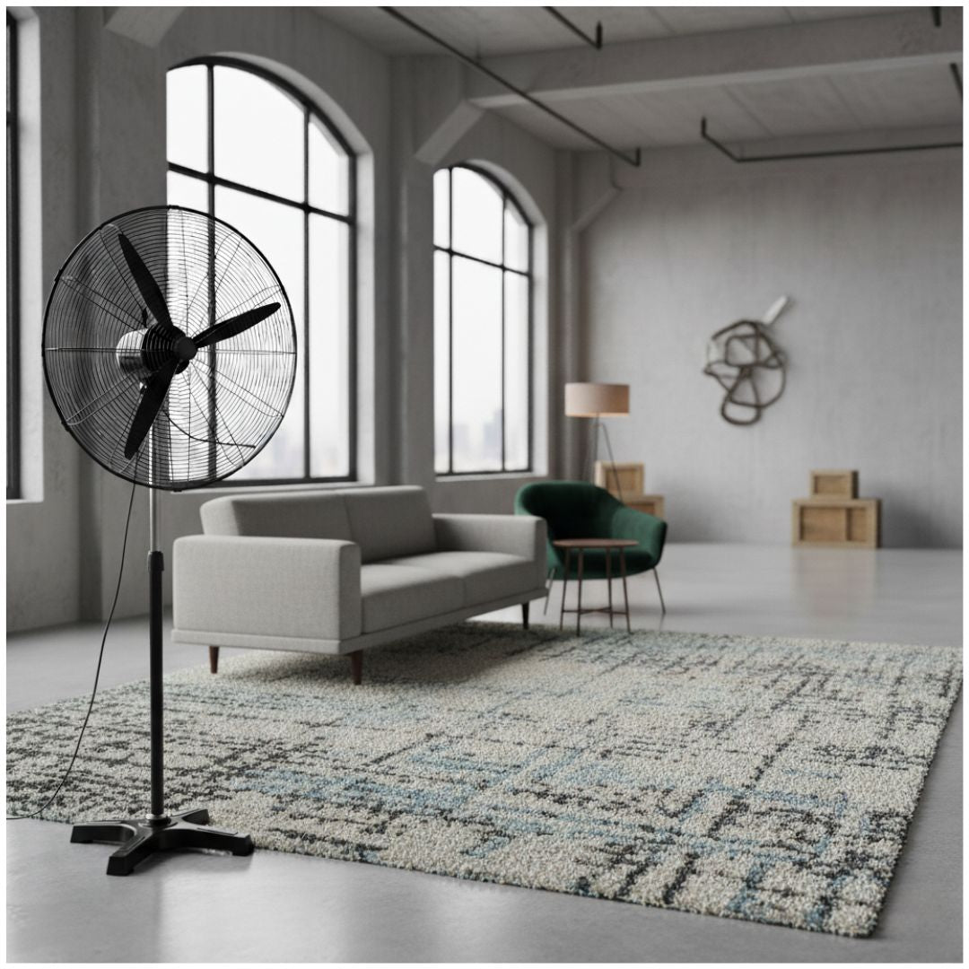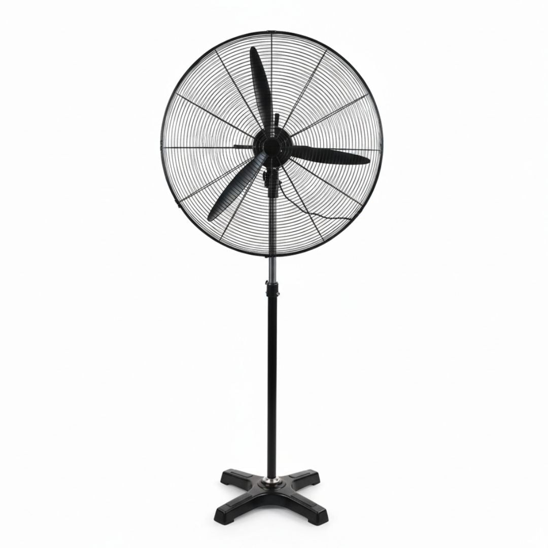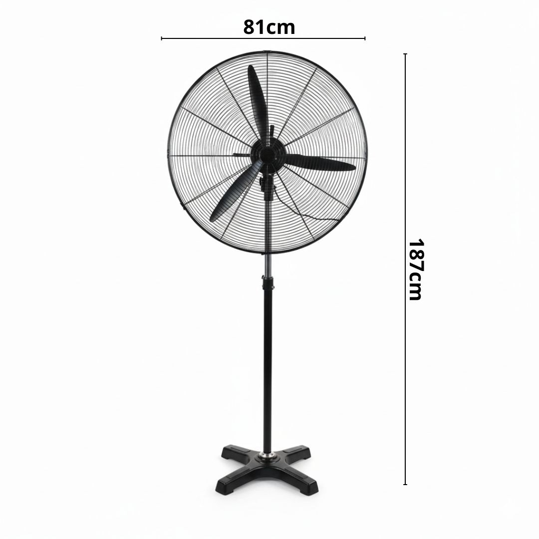 - Su imponente cabezal de 81 cm de diámetro maximiza la circulación del aire, mientras que su estructura robusta y base reforzada garantizan estabilidad y resistencia durante el uso continuo.