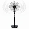 - Su altura regulable y cabezal oscilante garantizan una distribución uniforme del aire, mientras que su diseño moderno en color negro con acabados metálicos complementa cualquier espacio, desde el hogar hasta la oficina.